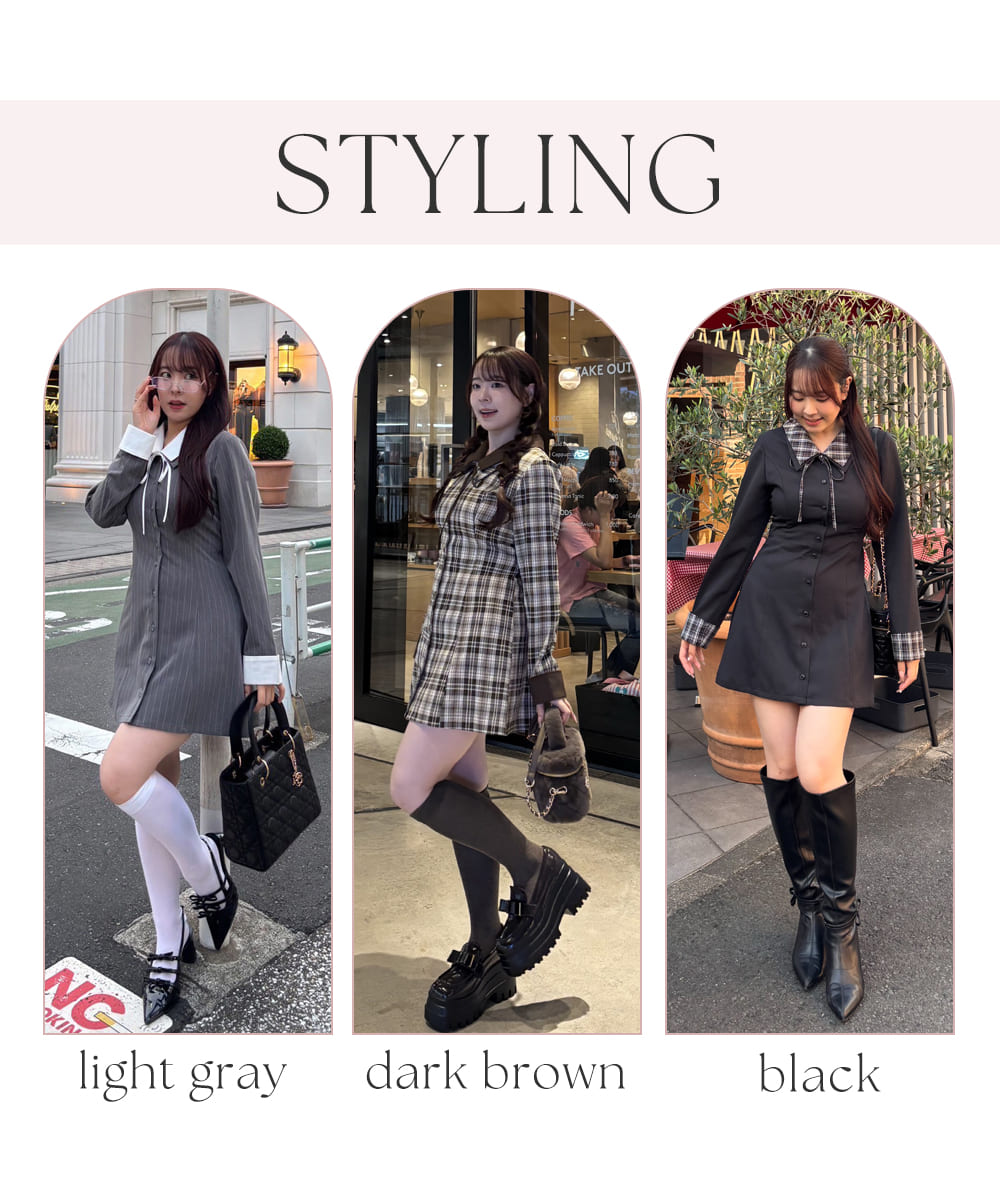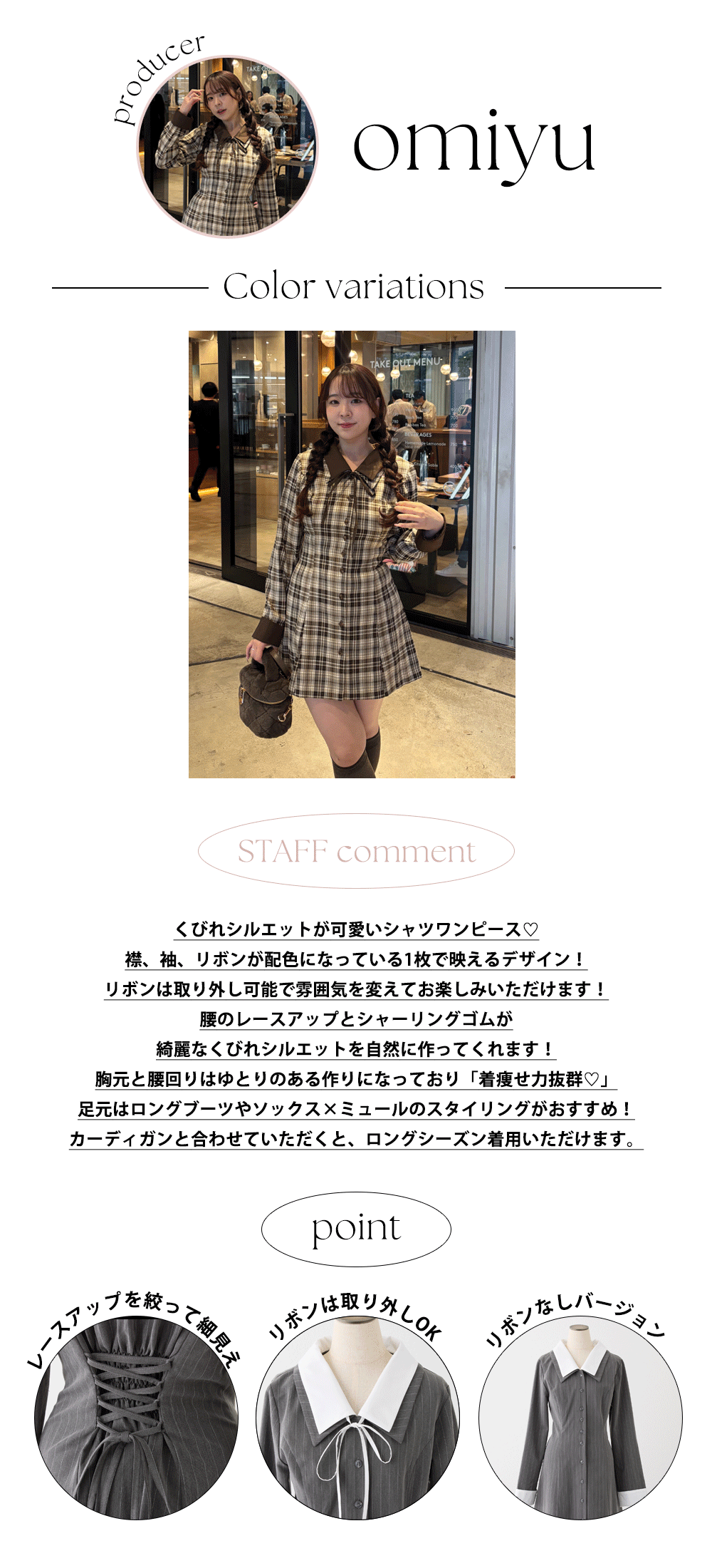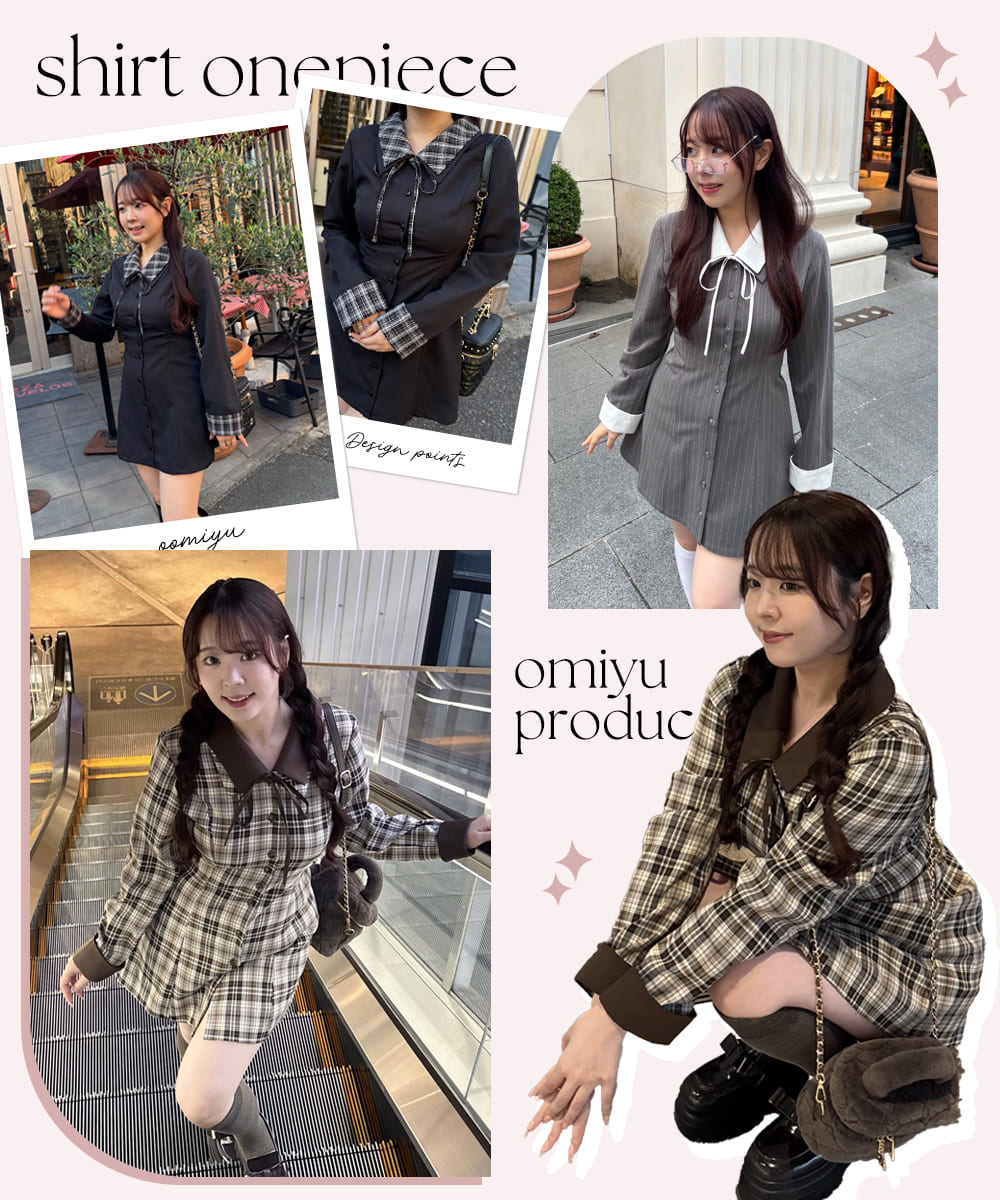リボン付きシャツワンピース