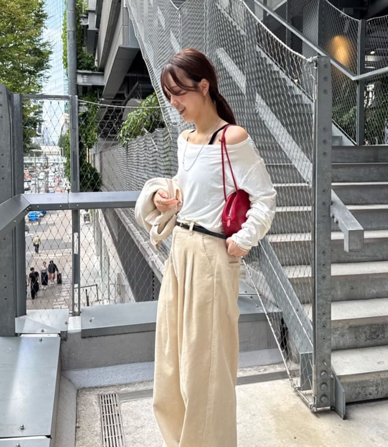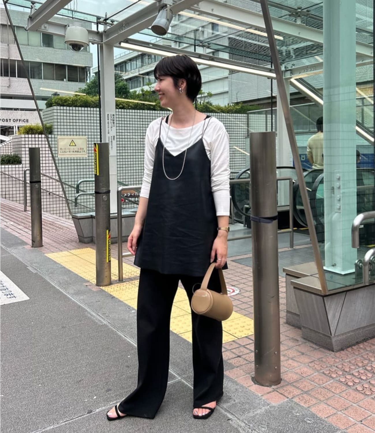 ジャケットやカーディガン、キャミなどとも合わせやすく