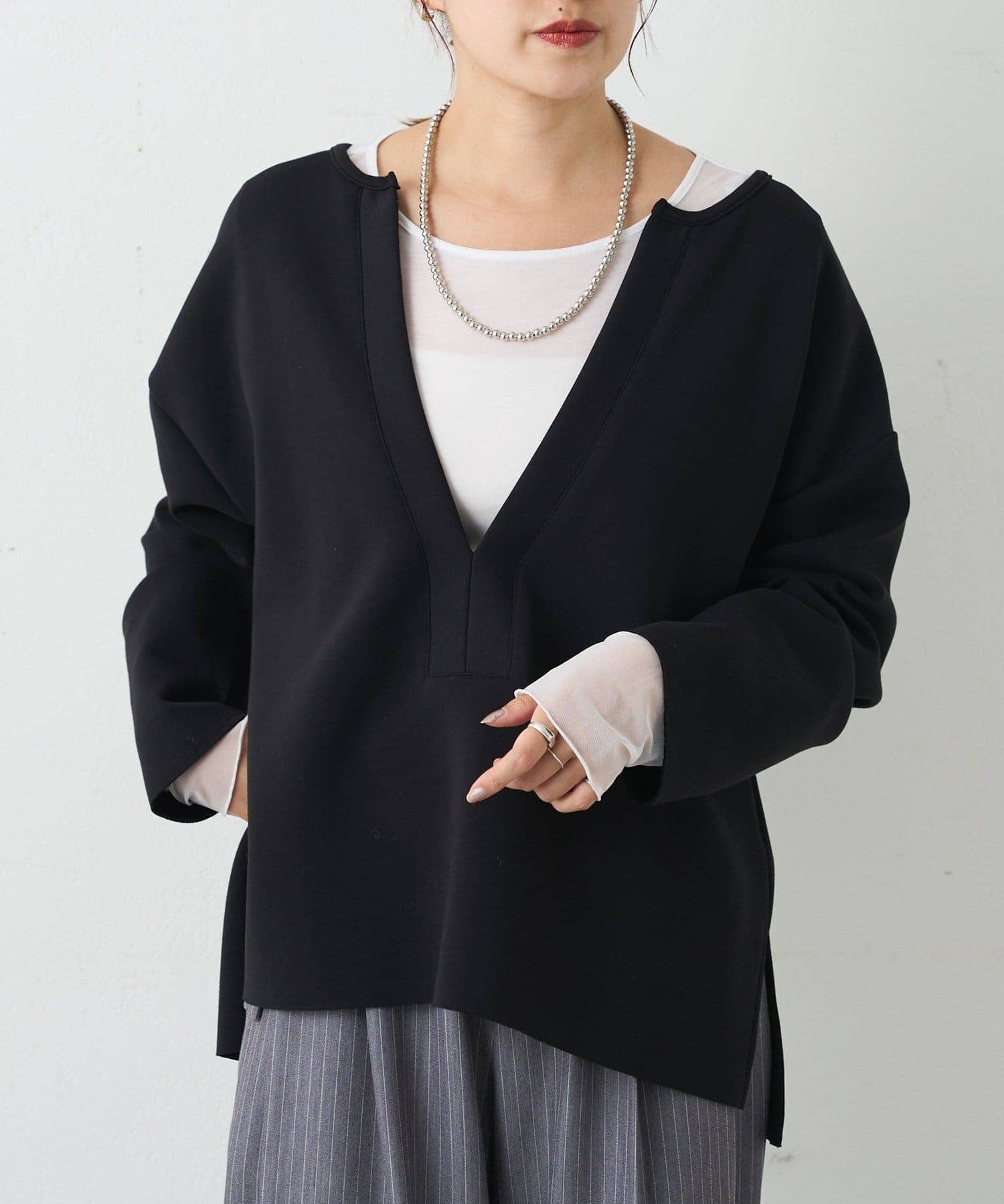 袖口の切り替えデザインがコーデのアクセントになるプルオーバー。