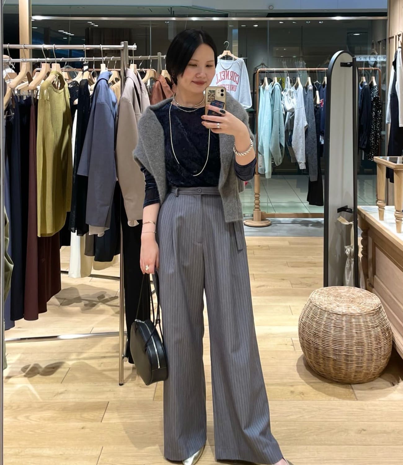 程よく開いたネックラインが女性らしい華やかさと抜け感を演出。