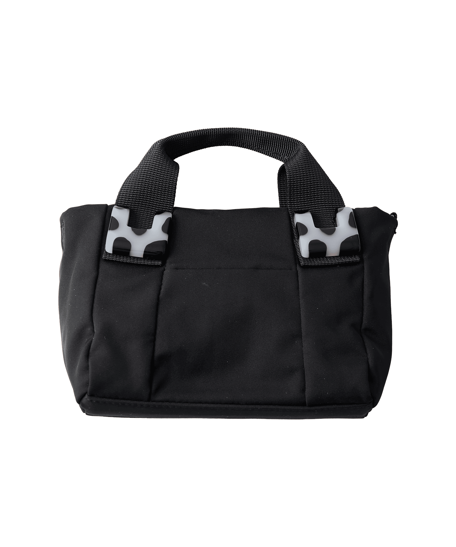 earの定番『樹脂パーツトートバッグ』にミニサイズが登場。スマートフォンやフラグメントケースが収まるサイズ感で、付属のショルダーベルトを取り付けて斜め掛けもできます。
