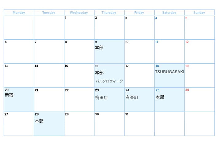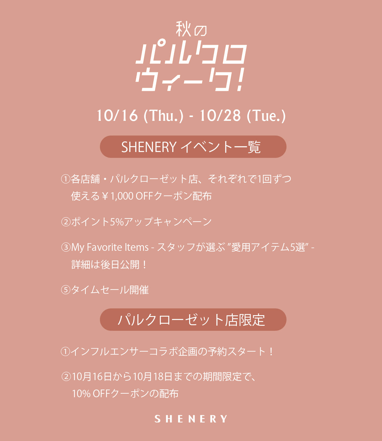 【各店舗・パルクローゼット店共通 SHENERYイベント一覧】