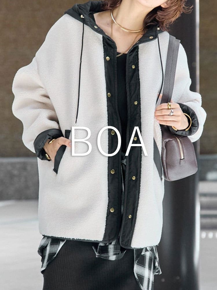 着るだけで存在感のあるボア素材。大人カジュアルな着こなしのポイントに。