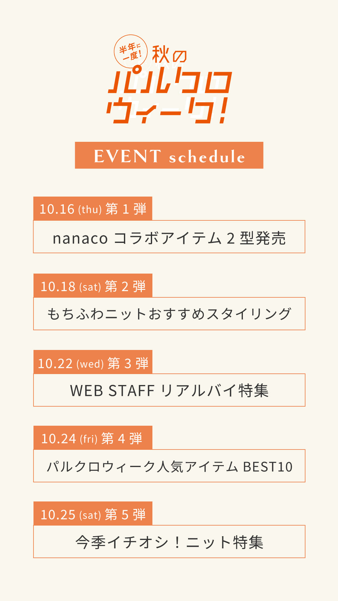 【10/16(木)~開催】パルクロウィーク EVENT schedule