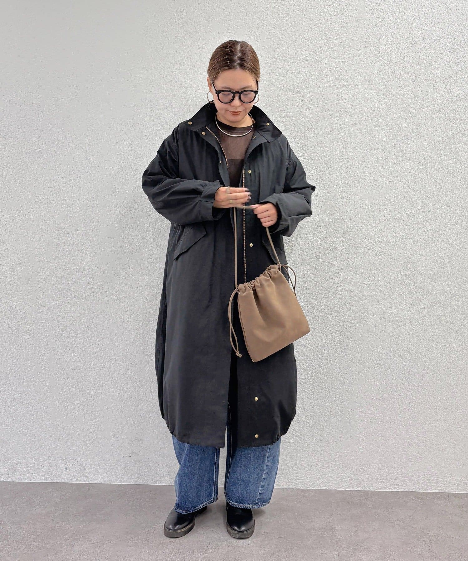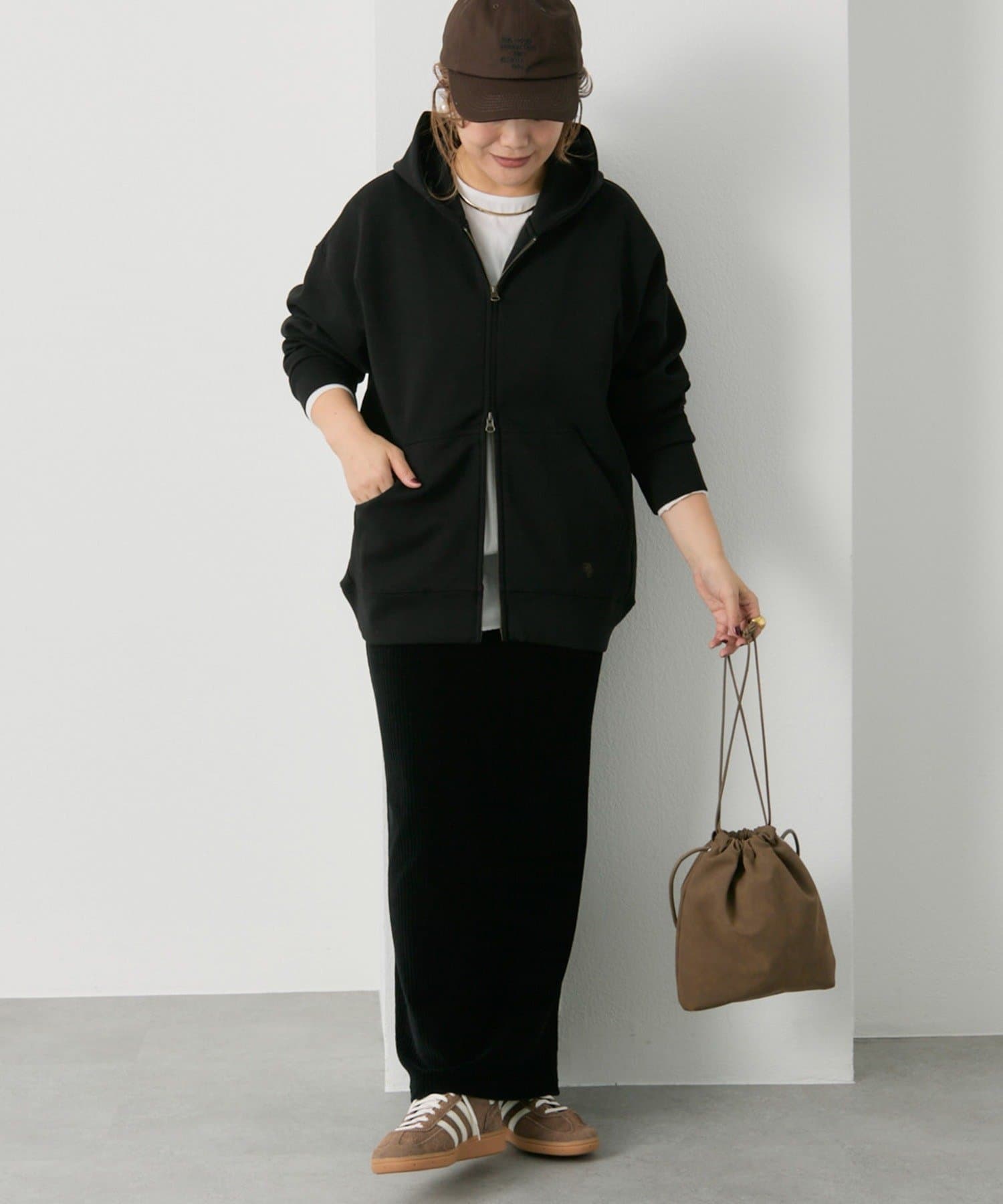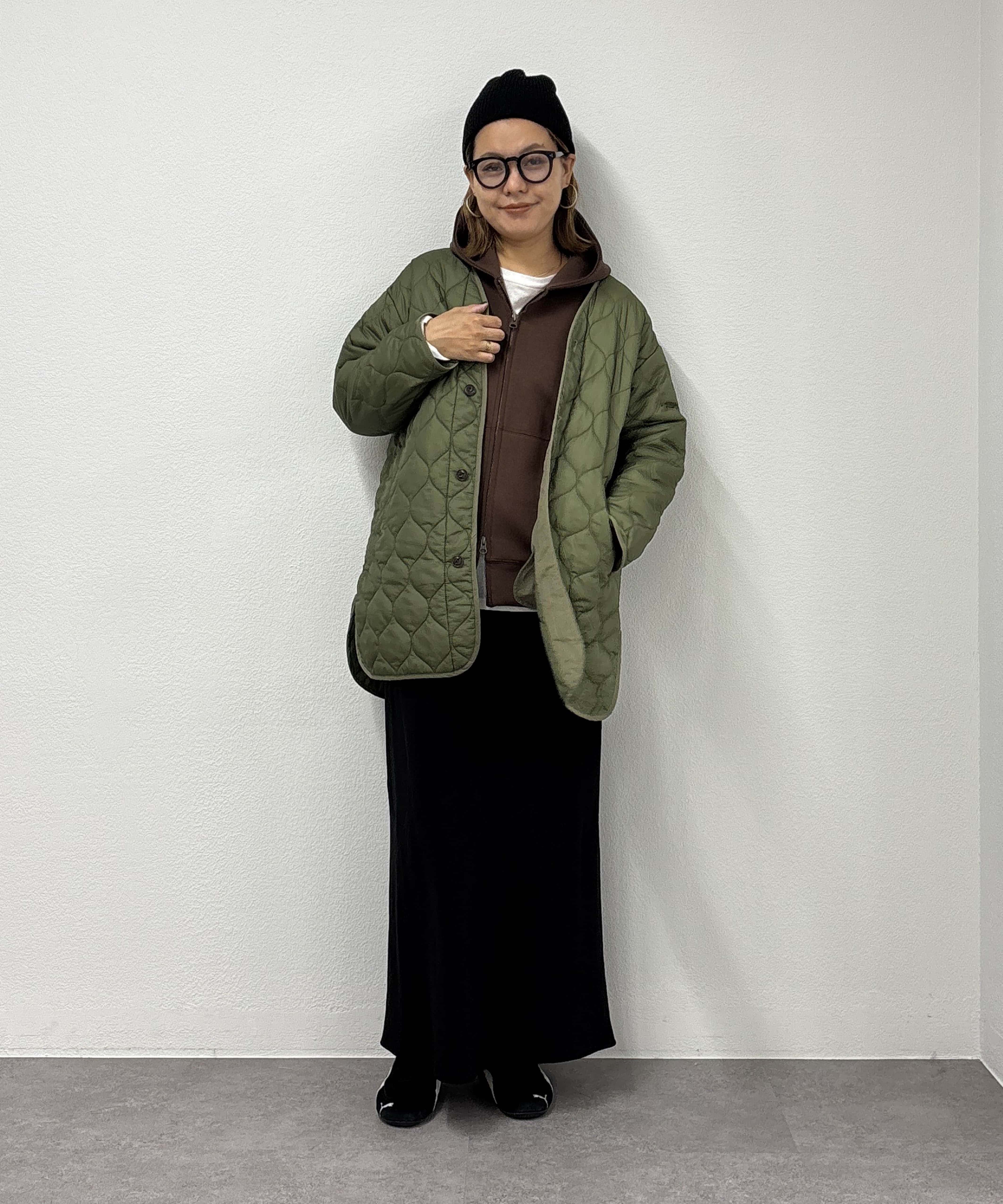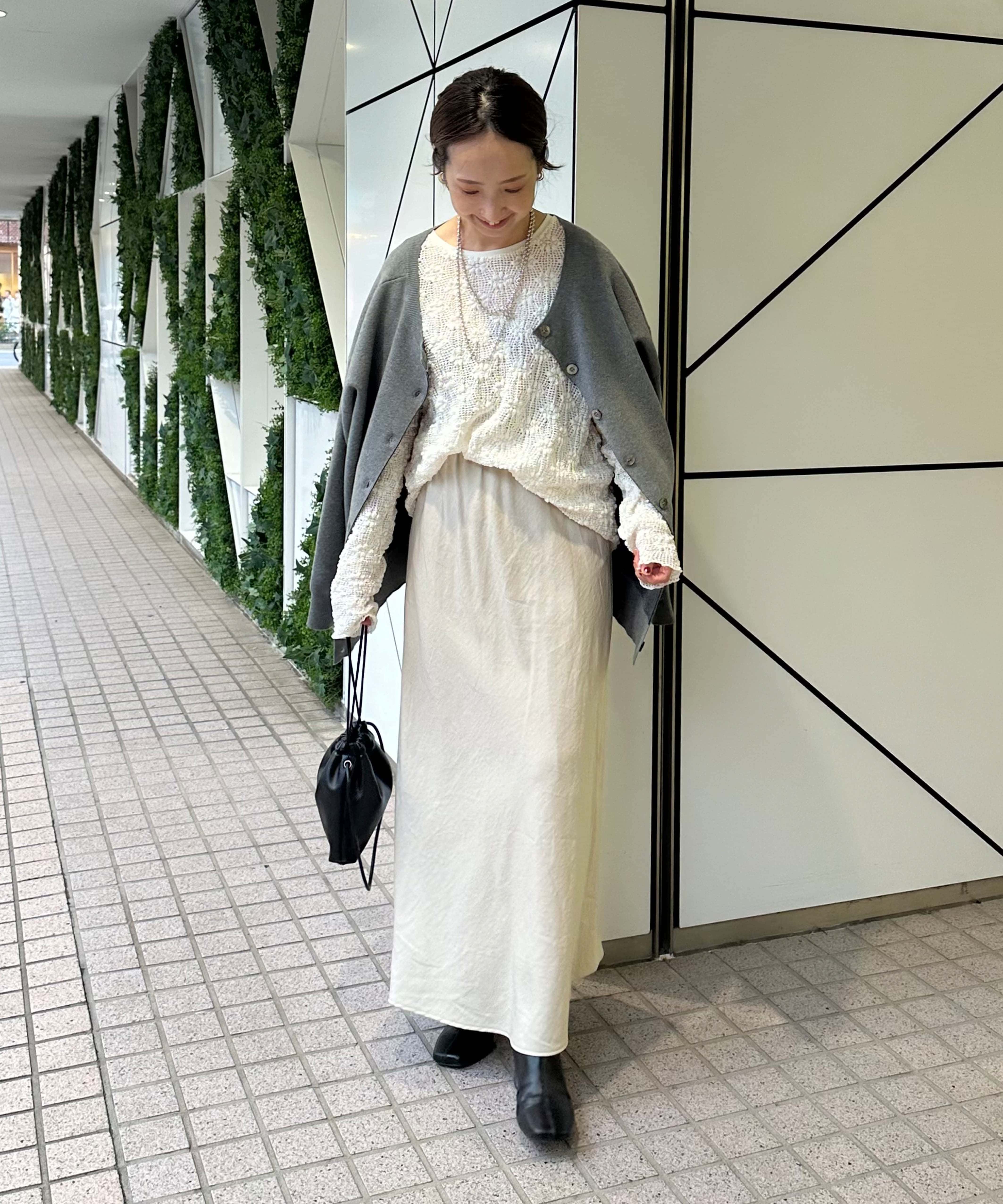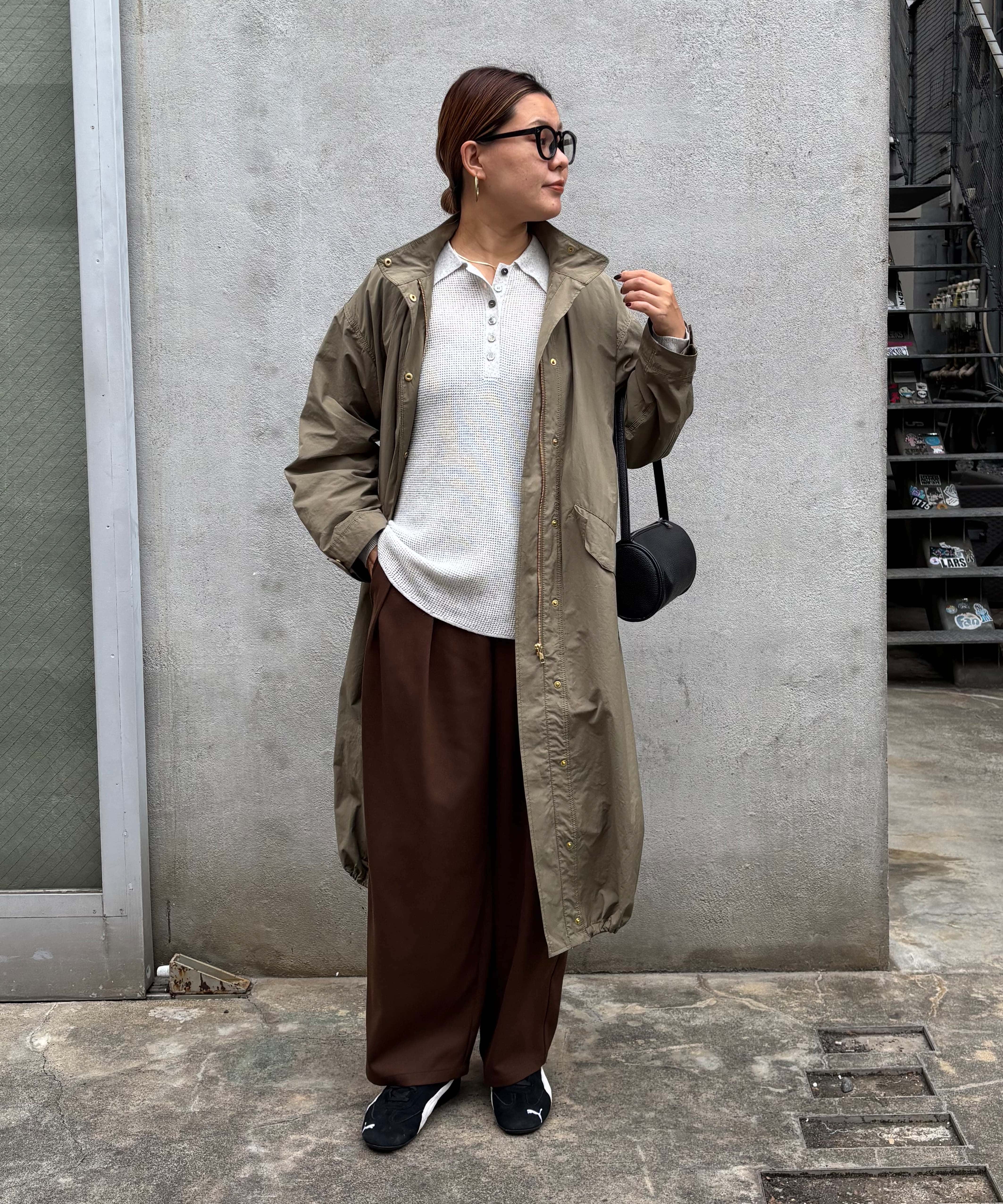 体型カバー抜群の着丈ですが抜け感が出るように、