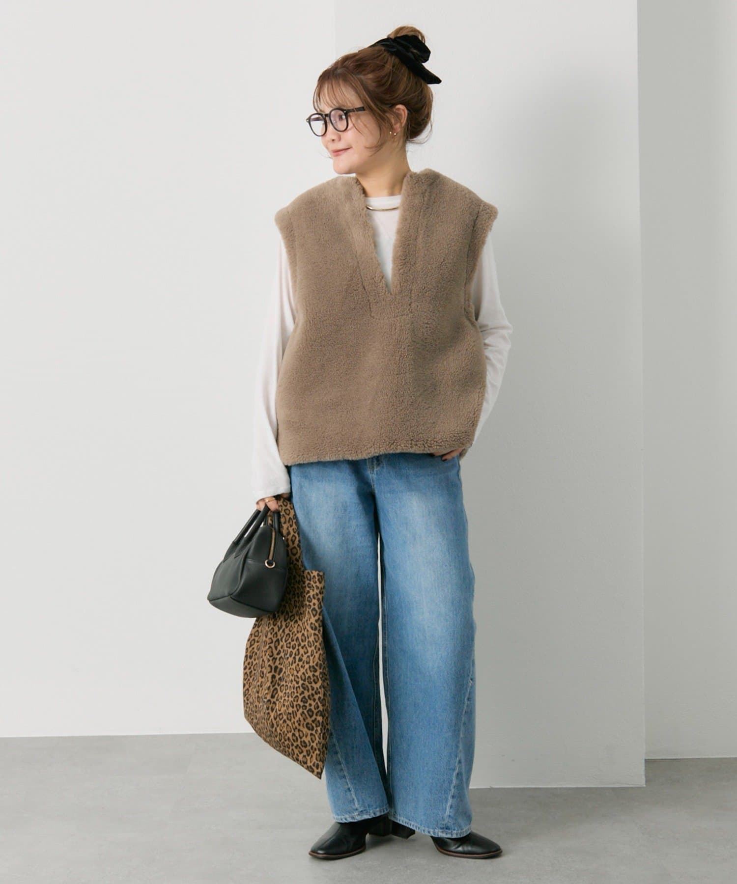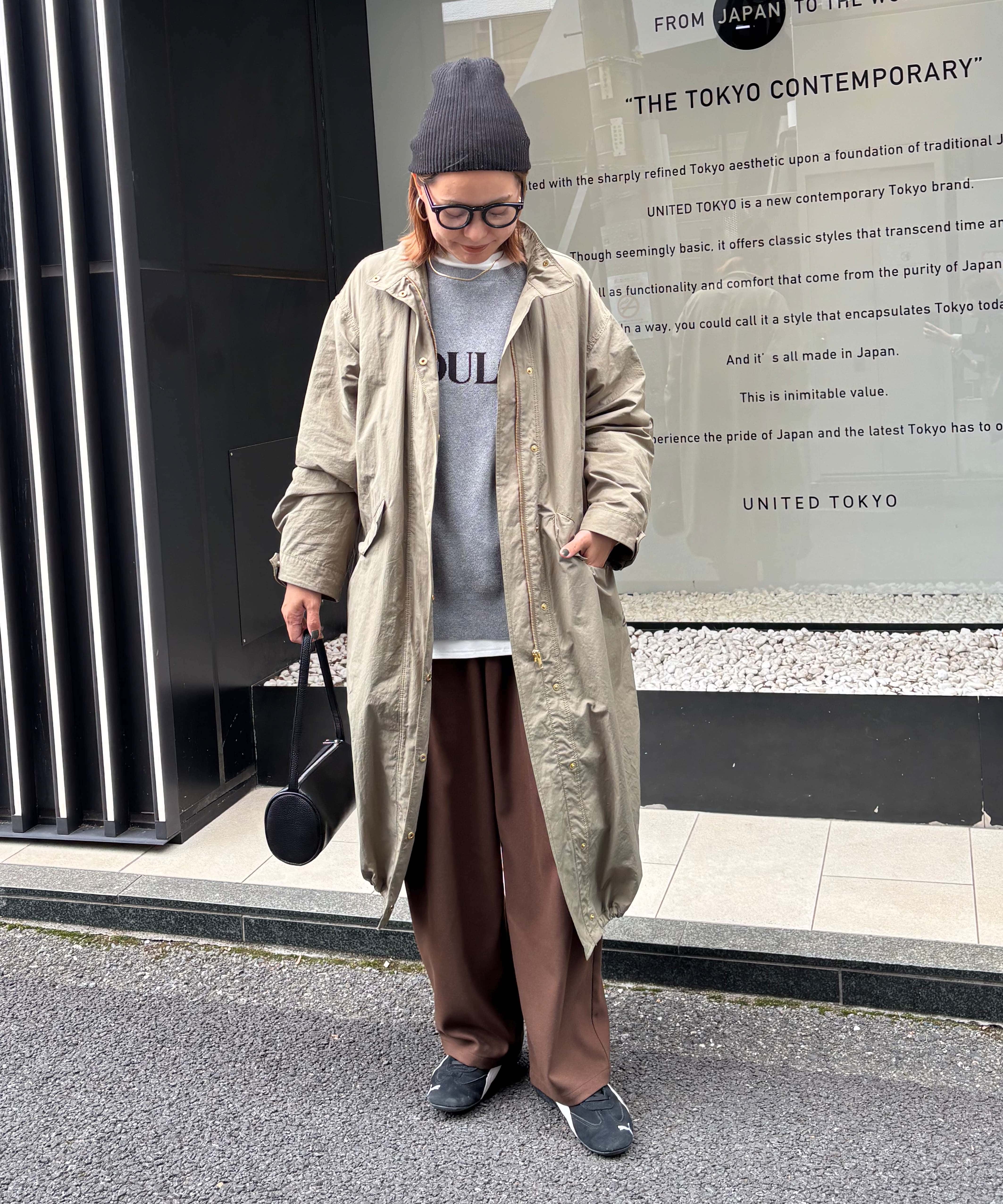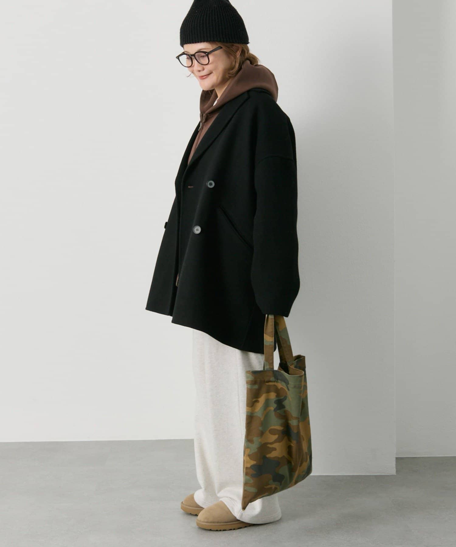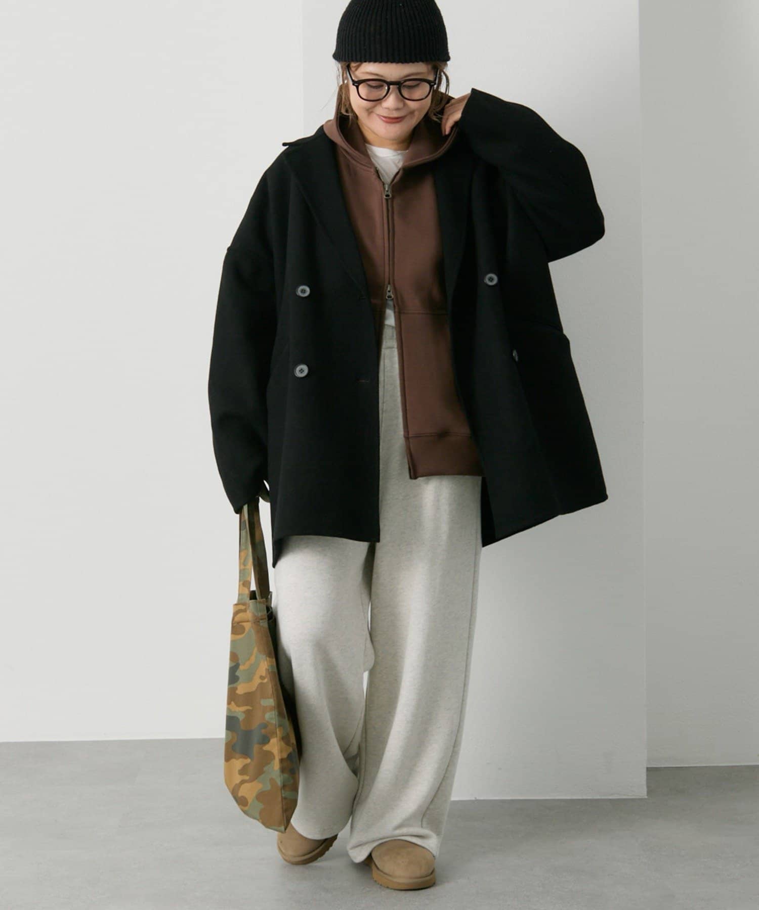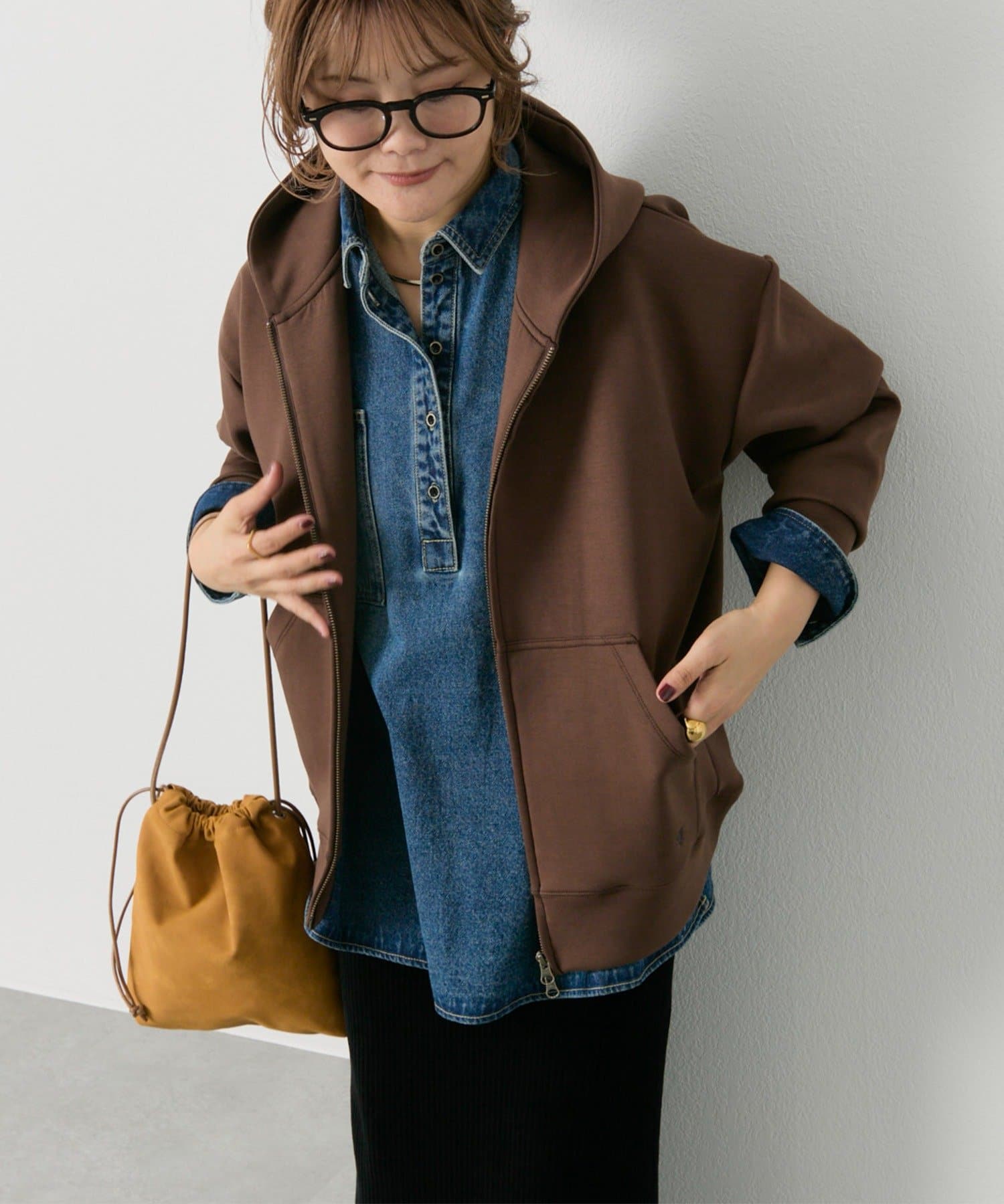体型カバー抜群の着丈ですが抜け感が出るように、