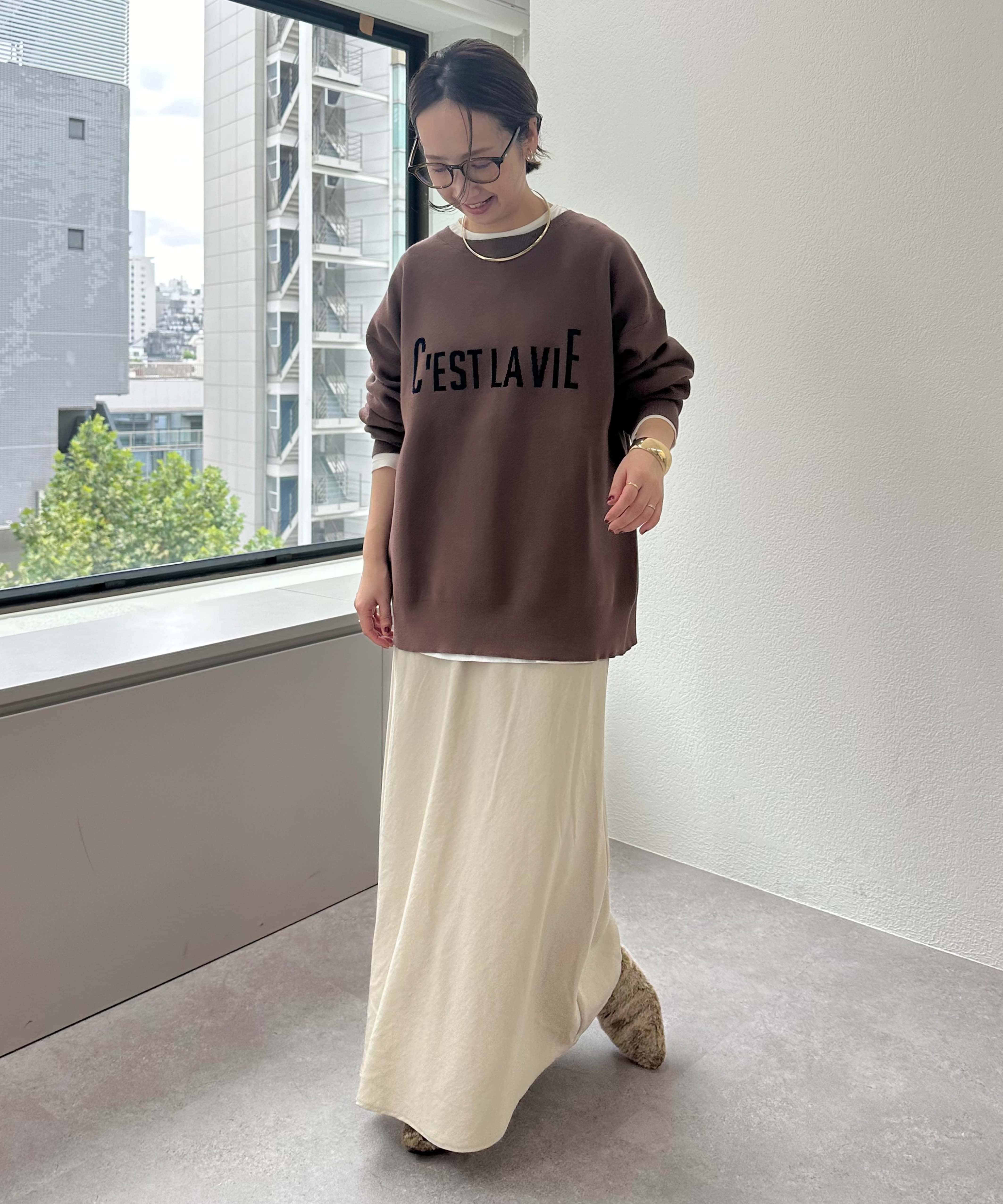 企画したロゴニットとコーディネートすると細見え効果抜群で、