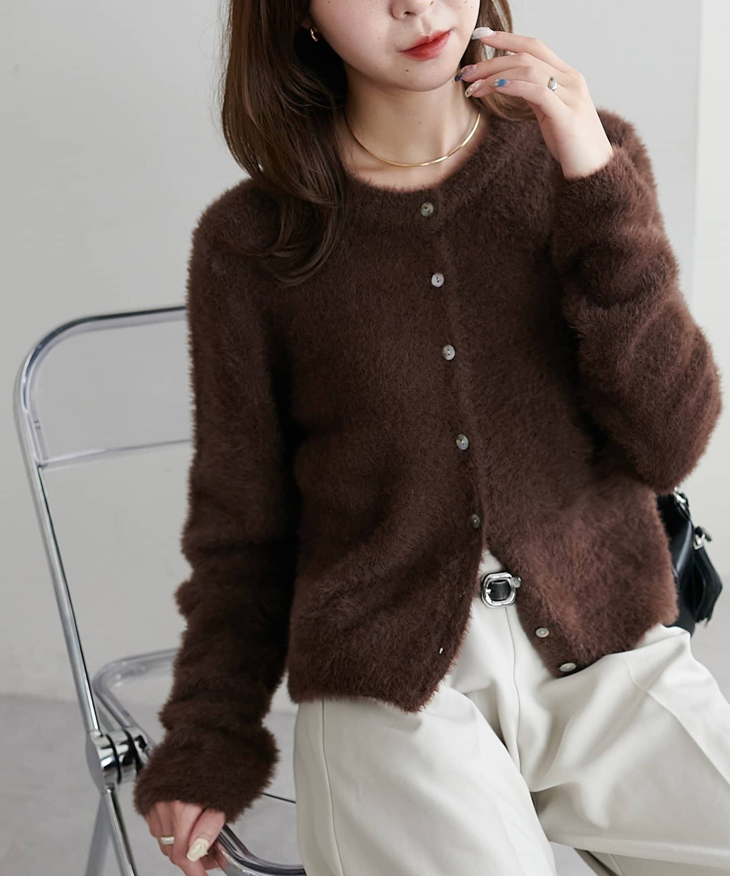 ふわふわな手触りで毛玉もできにくく、1枚でも羽織りとしても、重宝するアイテム。