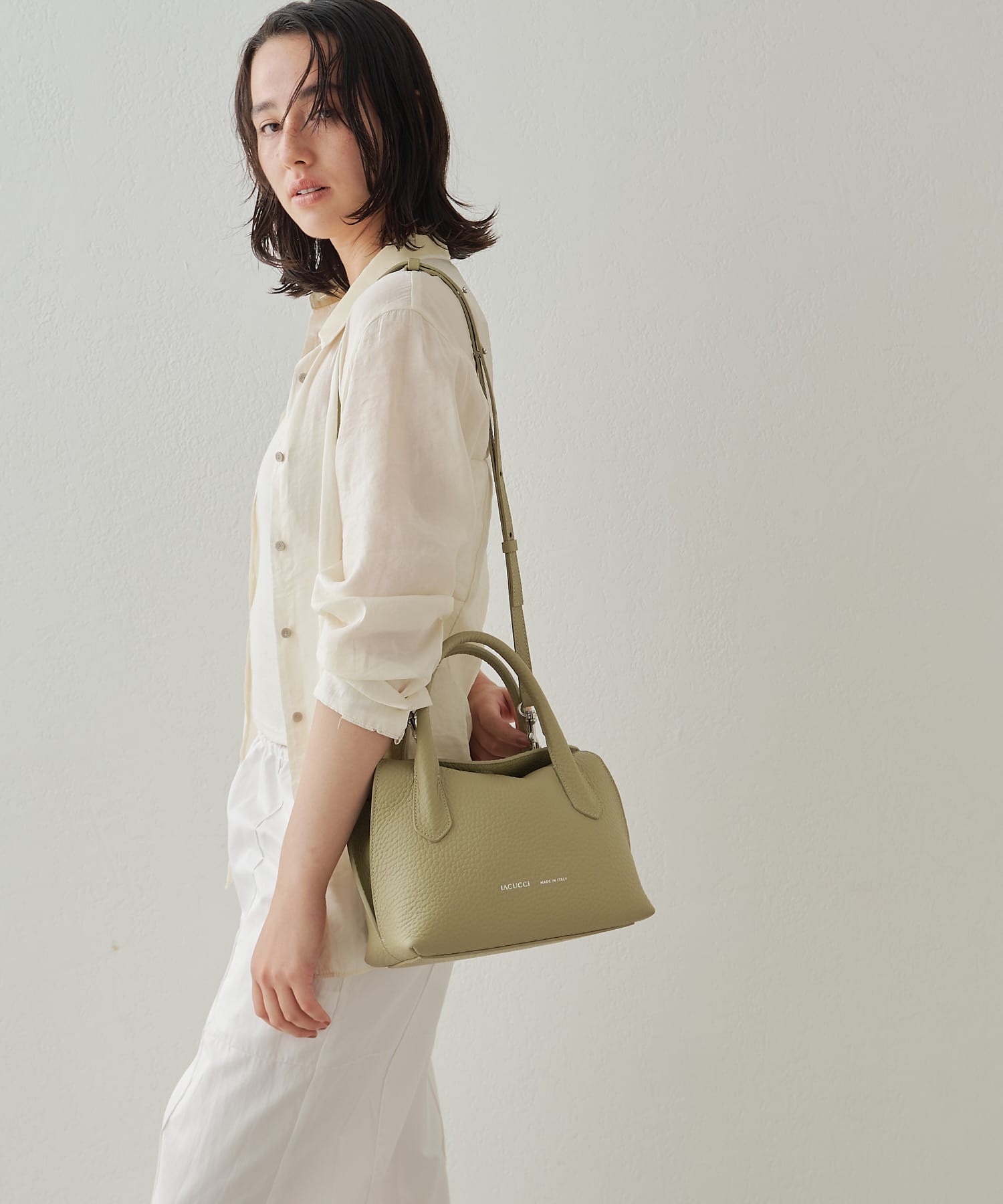 バッグはイアクッチのものばかり使用しており、グレーをずっと狙っていました。大きさ、デザインなどが気に入り購入しました。使い勝手はよく、カジュアルにもキレイめでも使えます。荷物を入れすぎてしまうと斜めがけショルダーにした場合、蓋が開いてしまうので注意が必要です。 長く使えるデザインでとても気に入っています。