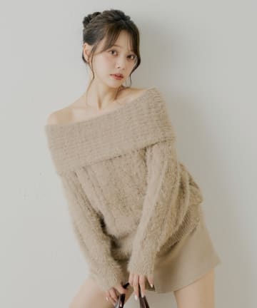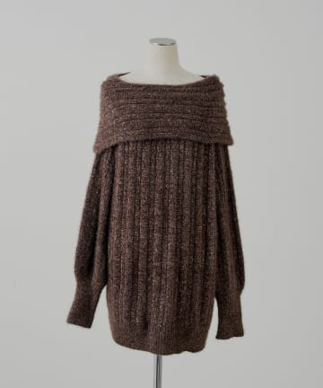 【10/23(木)0時販売】リブデザインオフショルルーズニット