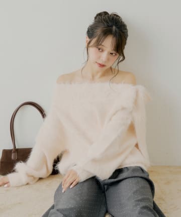 【10/23(木)0時販売】肩リボンショルダースリットオフショルニット