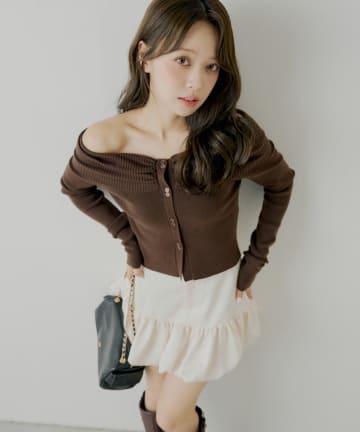 【10/23(木)0時販売】フロントボタンオフショルニット