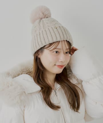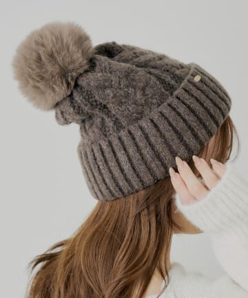 ファー付きケーブルニット帽