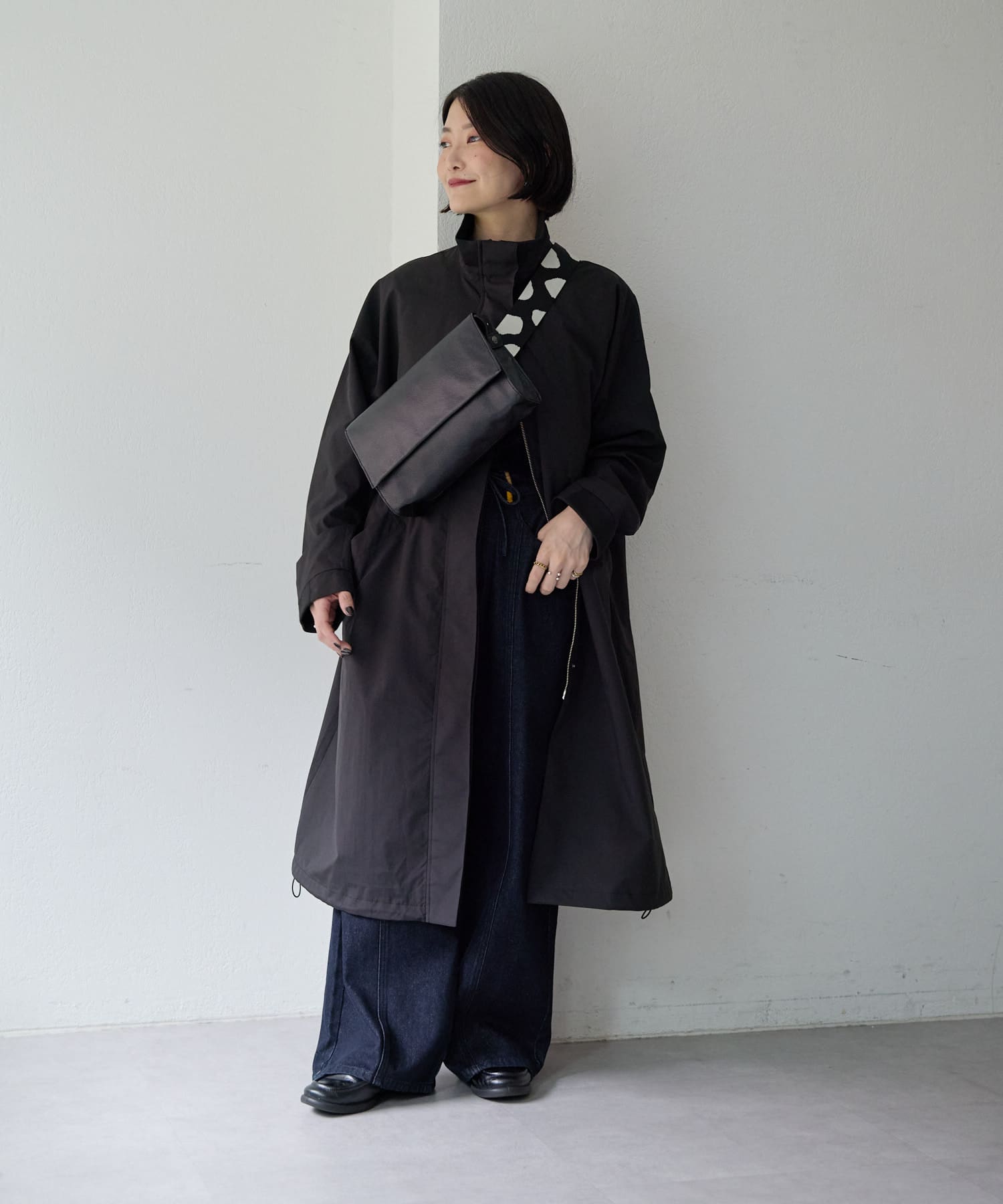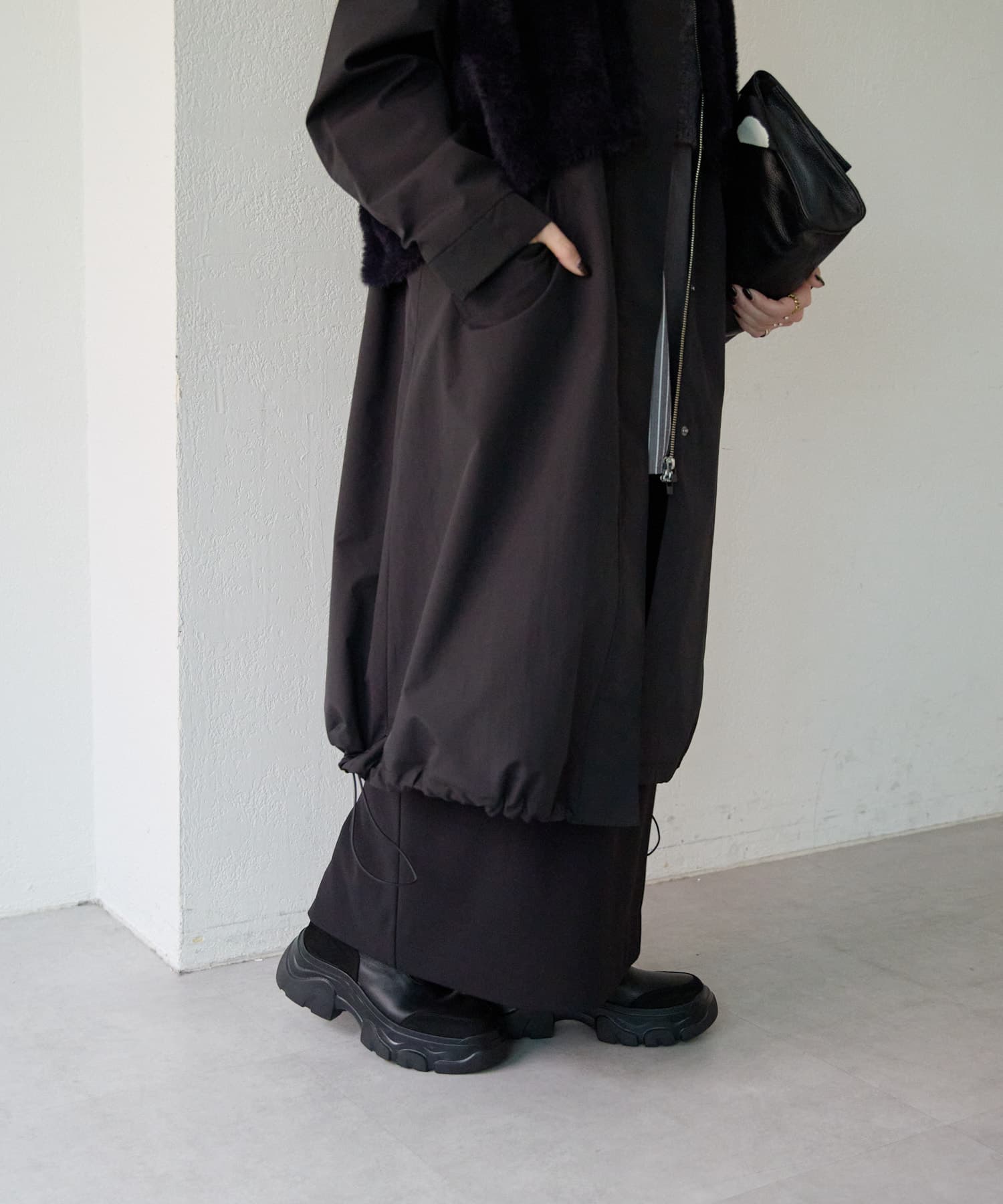 - スカート合わせの時はドローコードは絞って丸いシルエットに。フェミニンな印象になります。