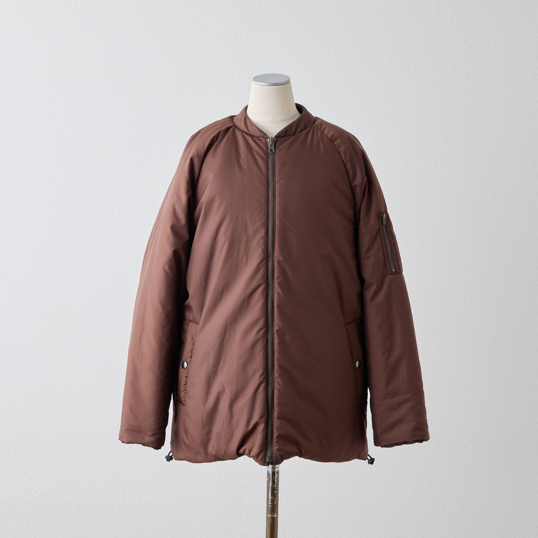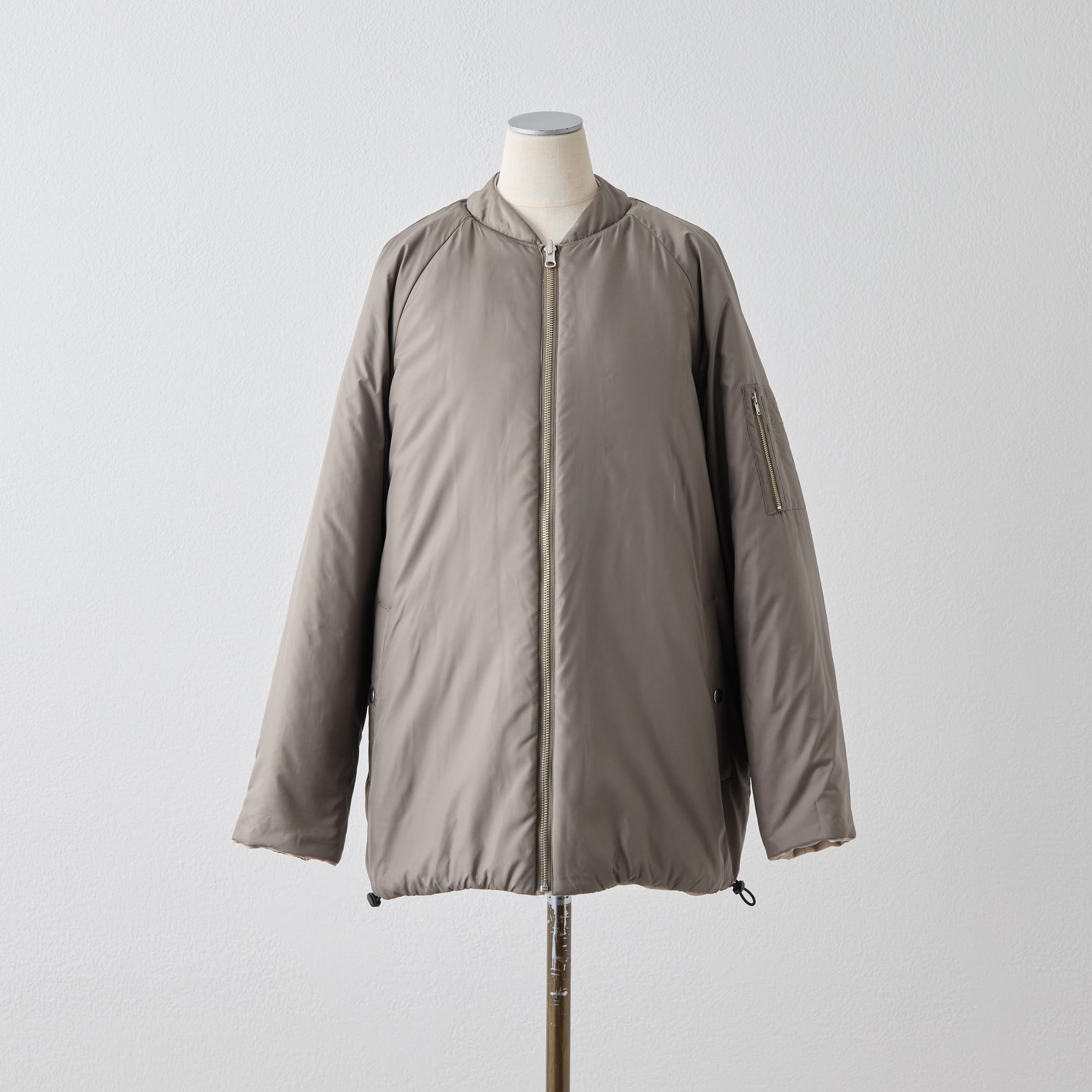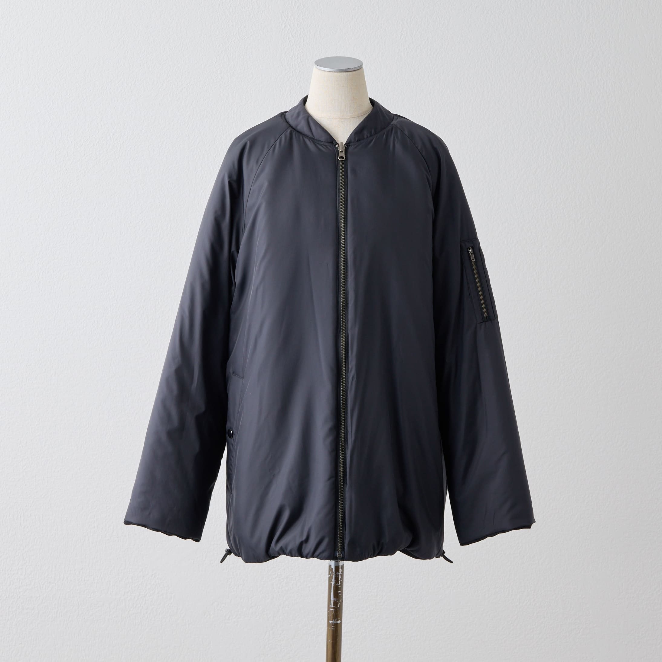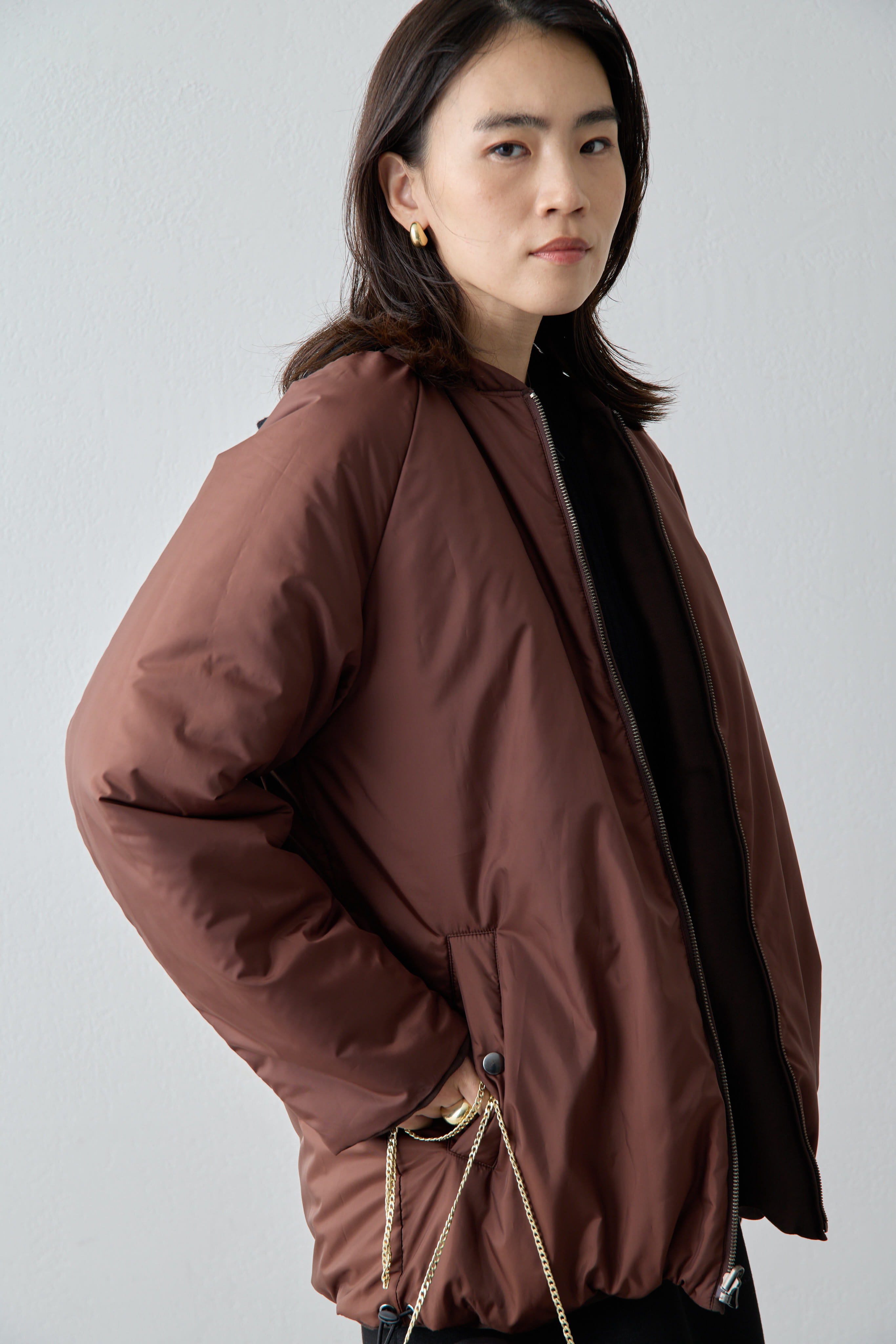 MA-1を思わせるモードなルックスと、襟元にギャザーを寄せたフェミニンな表情。