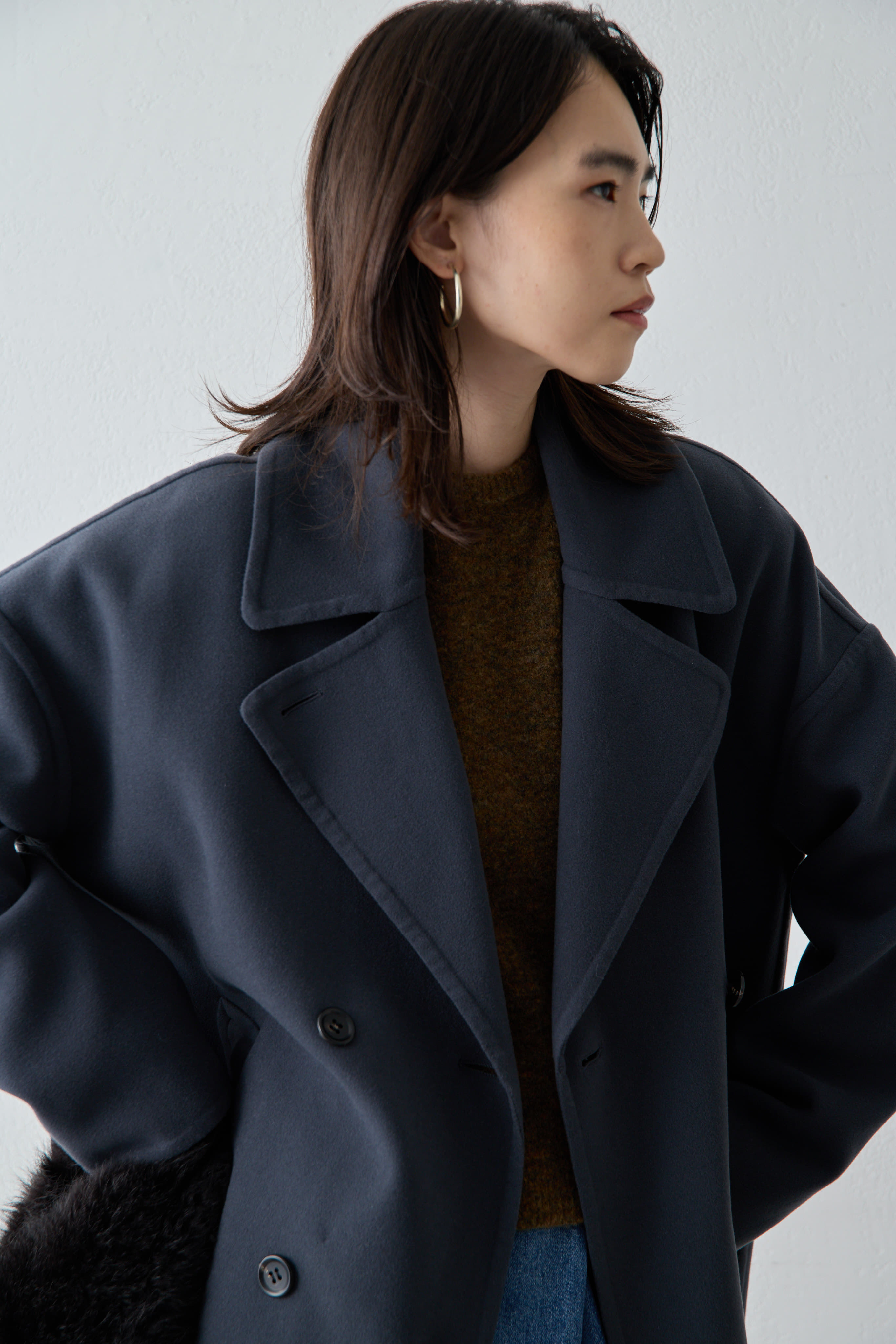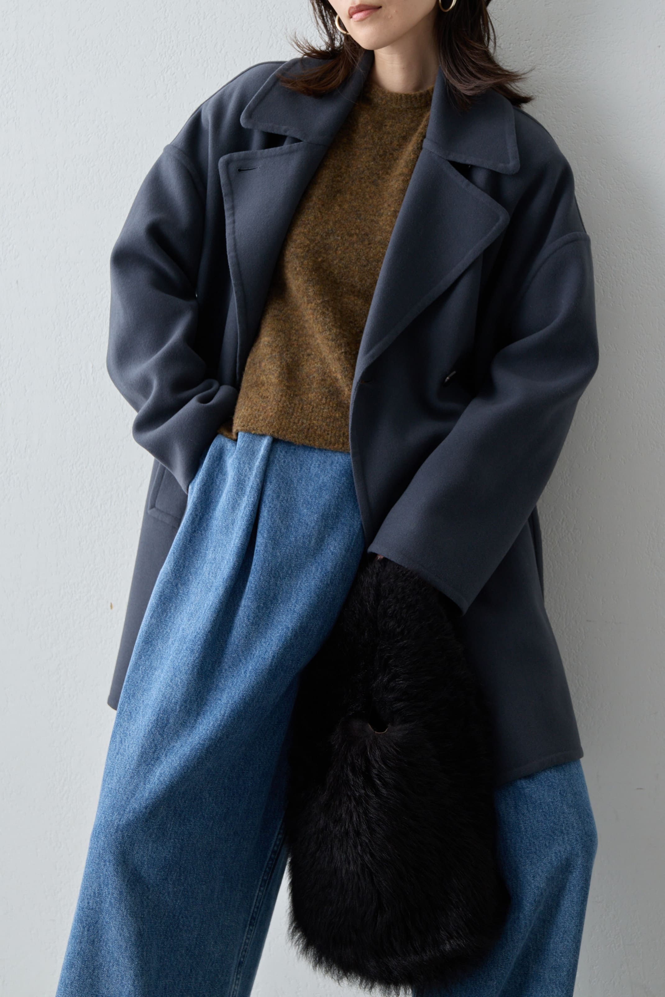 軽やかさと暖かさを両立した、上質なリバー仕立てのメルトンコート。