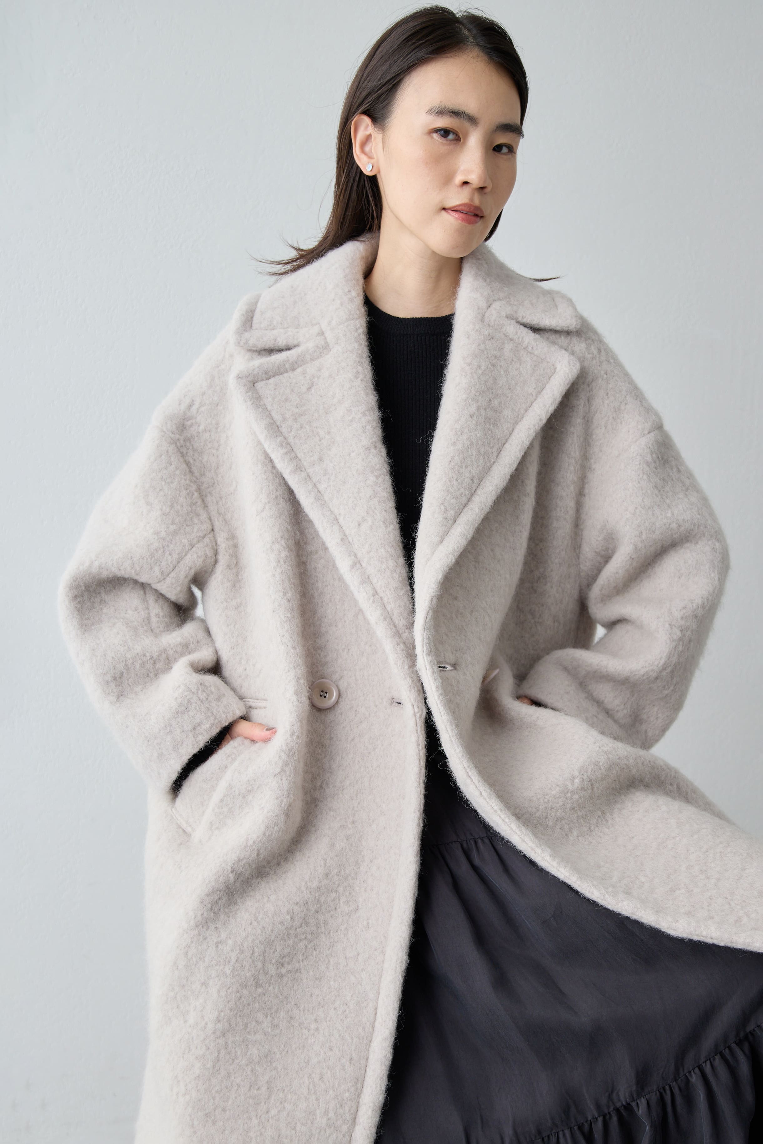 季節感を引き立てるウォームなシャギー素材が魅力のコート。