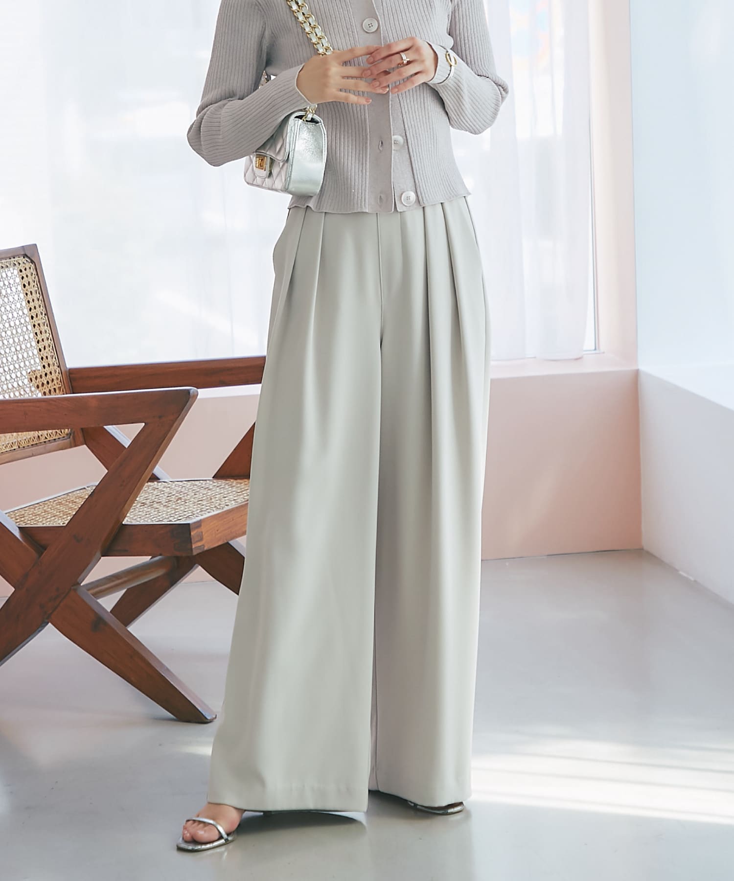 ・生地の落ち感ととろみ感が女性らしい柔らかなタックパンツです。