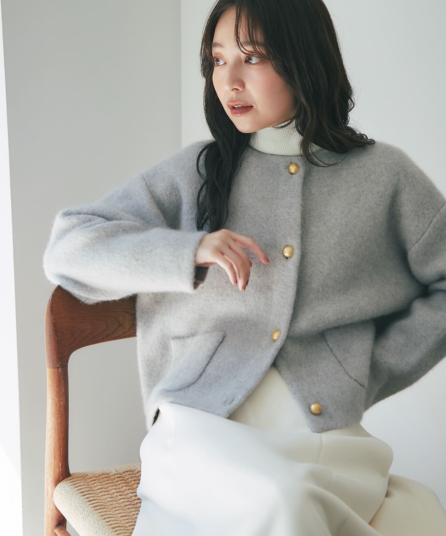 ・ふっくらと暖かく包み込まれるような着心地が魅力のジャケットカーディガン。