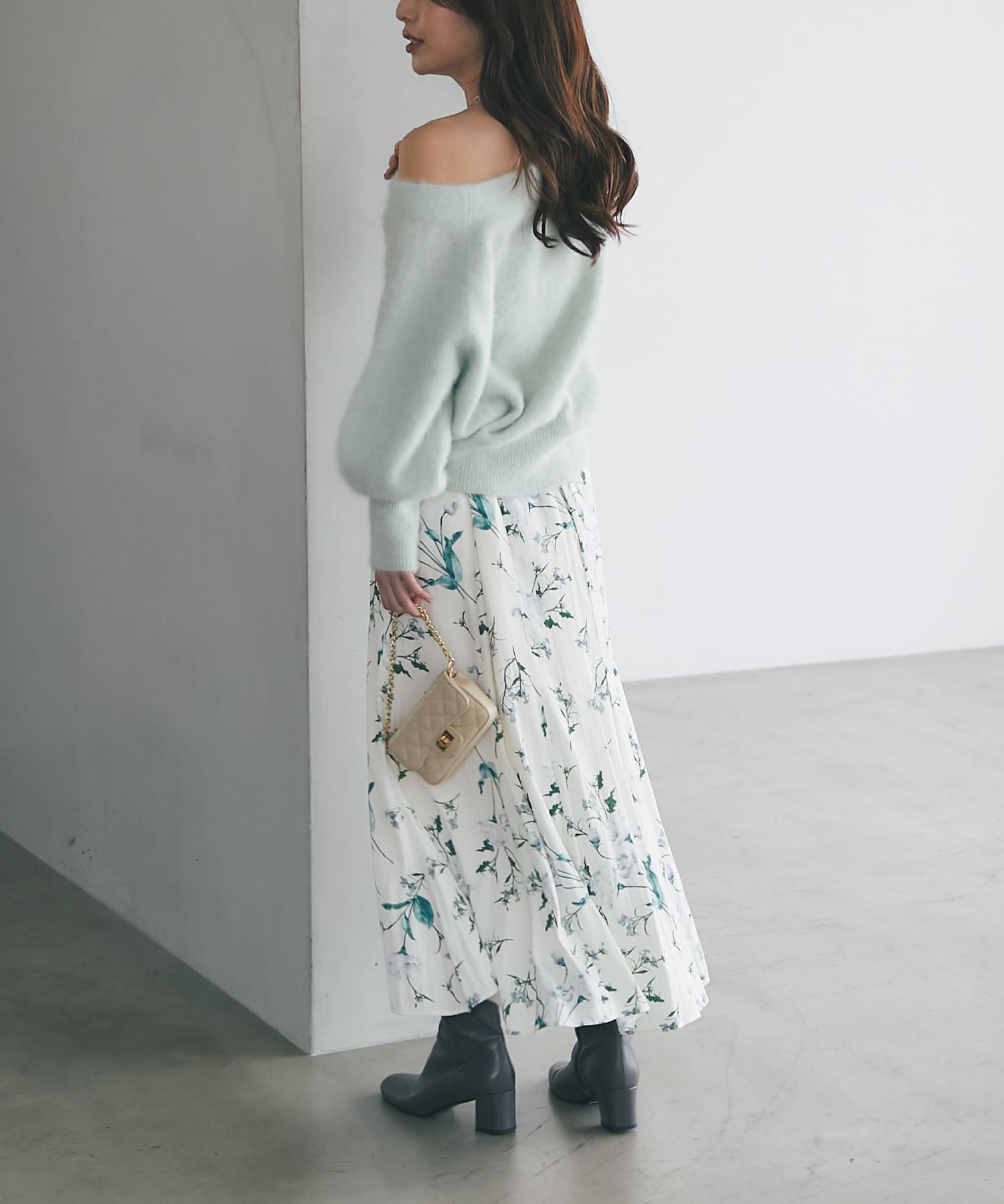 ヘアリーウールカシミヤ混オフショルニット ¥28,930(税込)