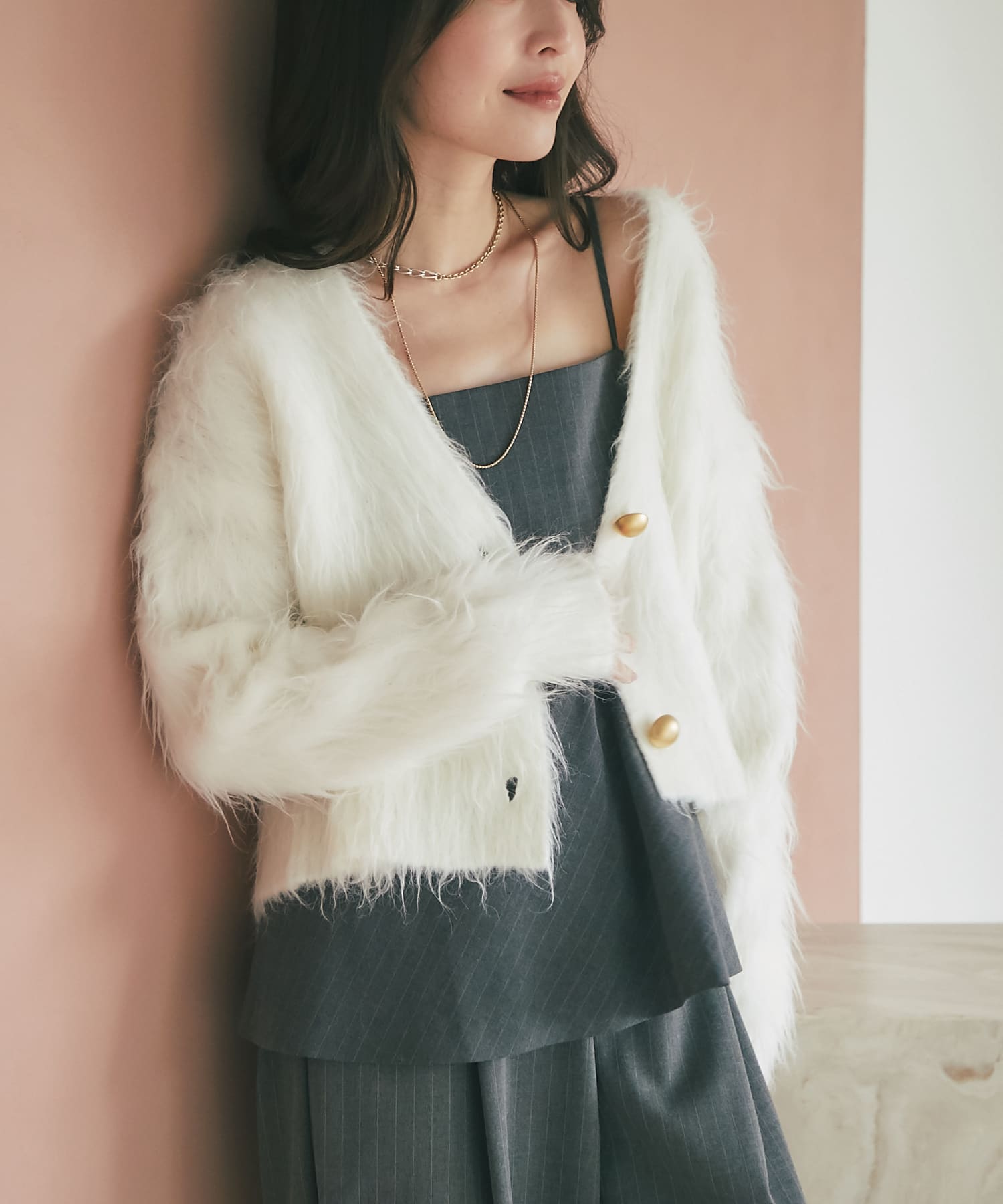ロングフェザークロップドカーディガン ¥14,520(税込)