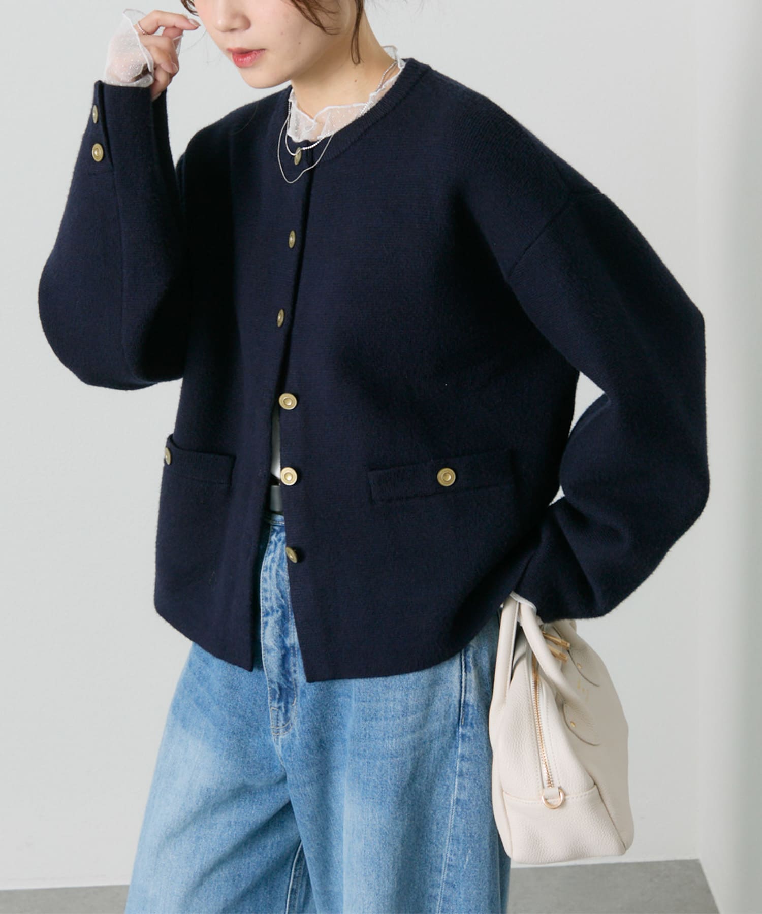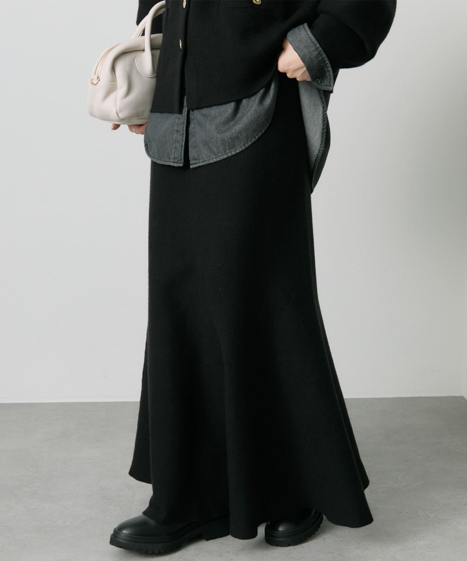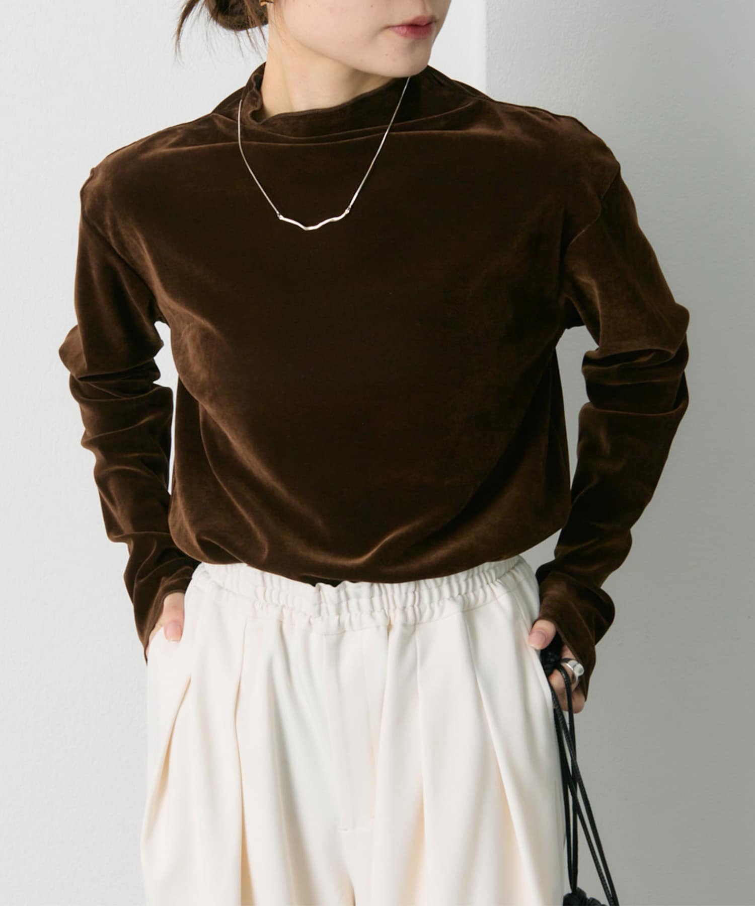 ハイネックのベロアインナーに
