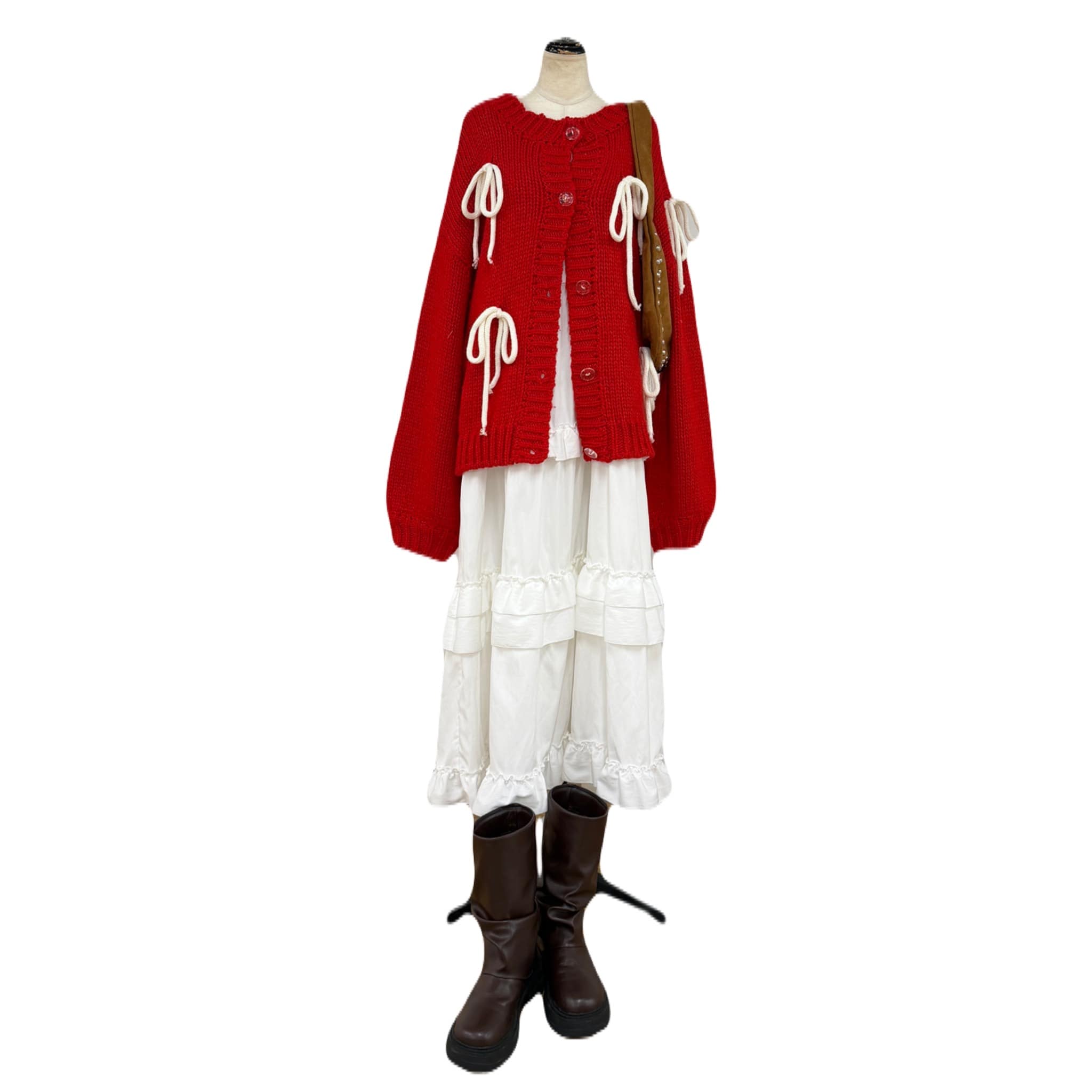 リボンカーデにロングワンピースを合わせると