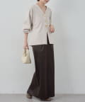 ●顔周りをすっきりとした印象に導く、深めに開いたVネックデザイン。