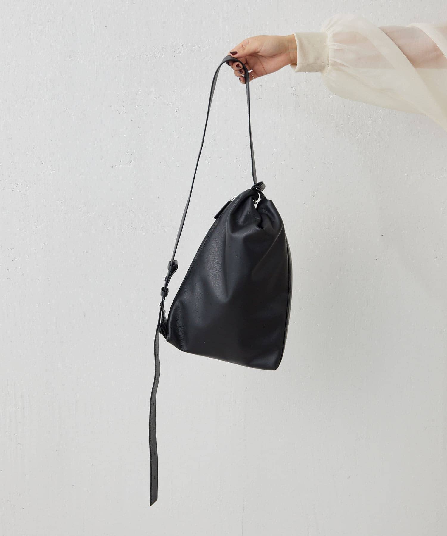 横型と巾着型の2WAYでお使いいただけるレザーバッグ。