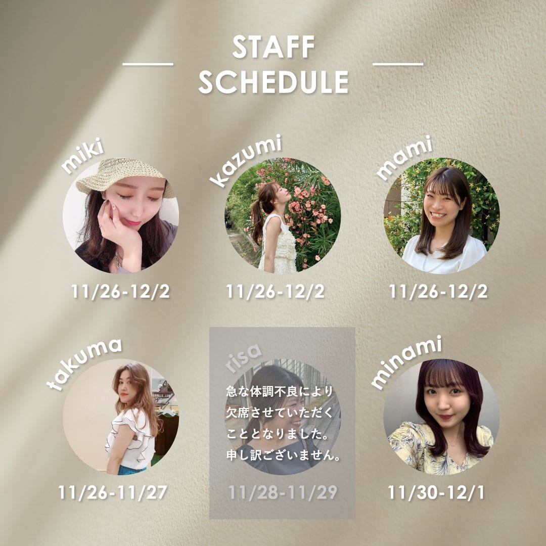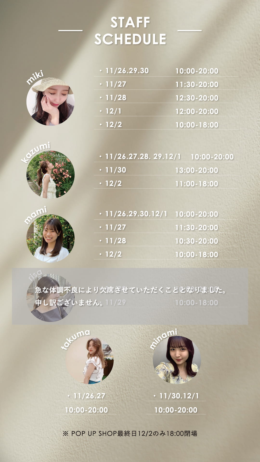 ※スタッフmiki、kazumiに関しまして接客予約枠の時間帯がございます。