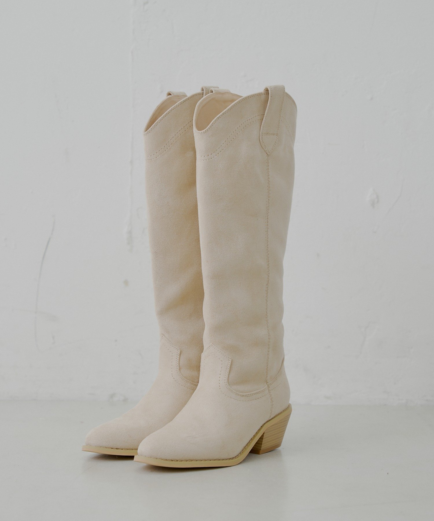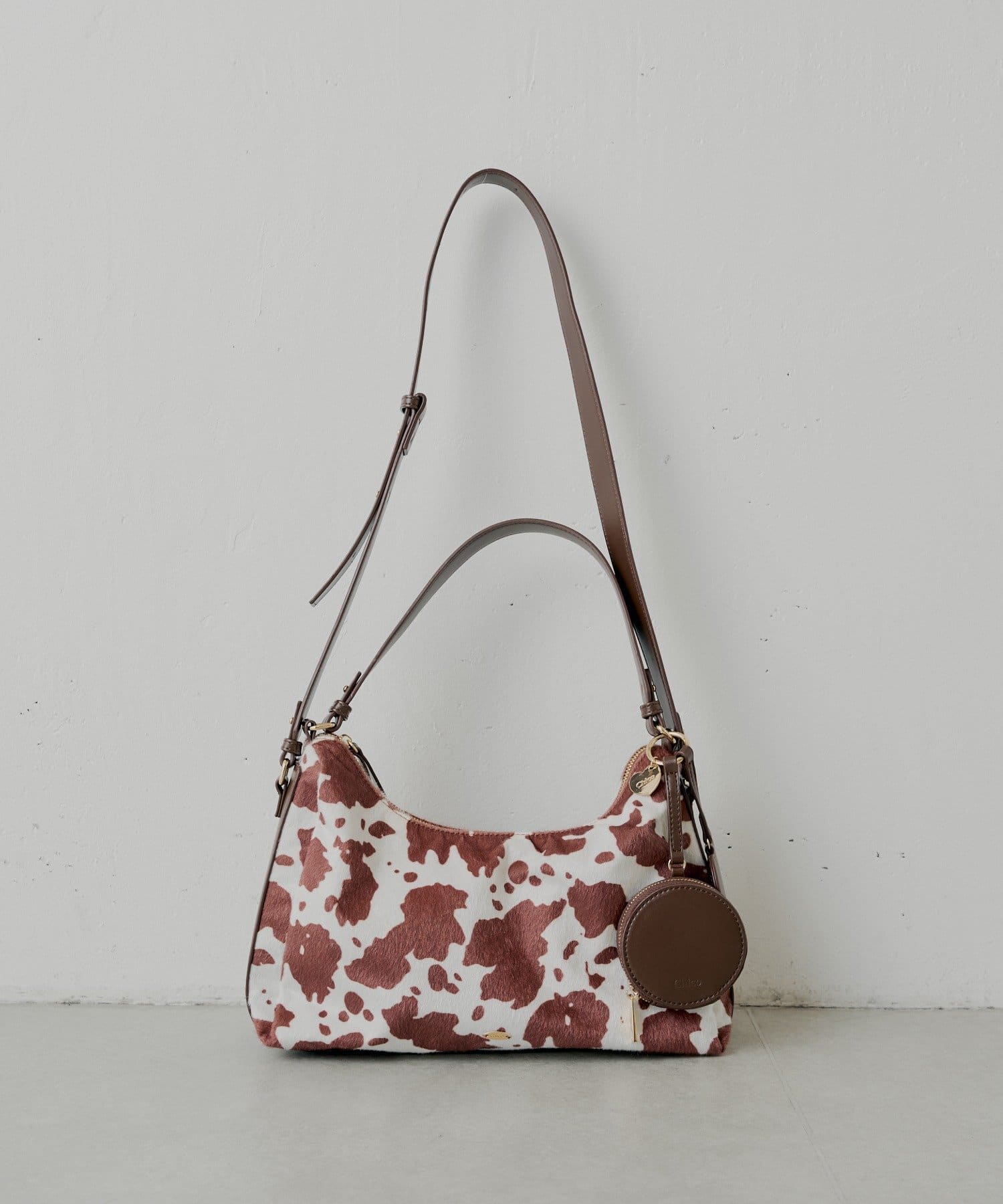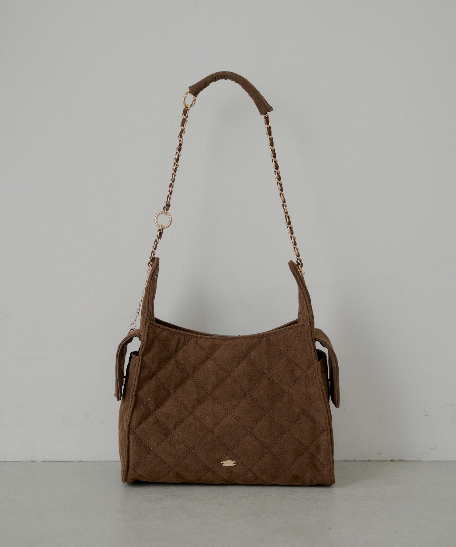 - ポーチチャーム付きスエードコンビボストンバッグ-