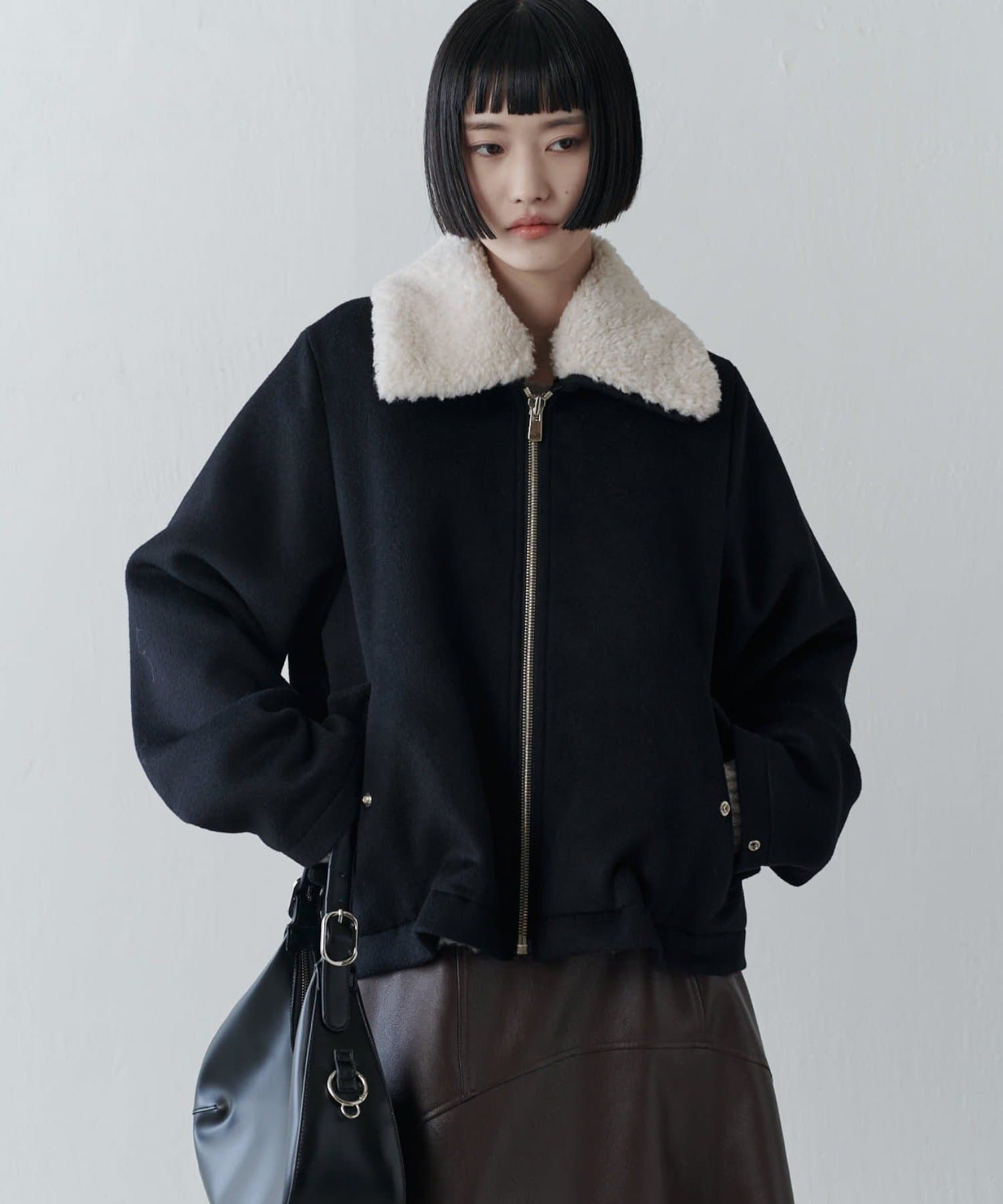 襟のボアが特徴的なブルゾンで、ボアは取り外しが可能◎