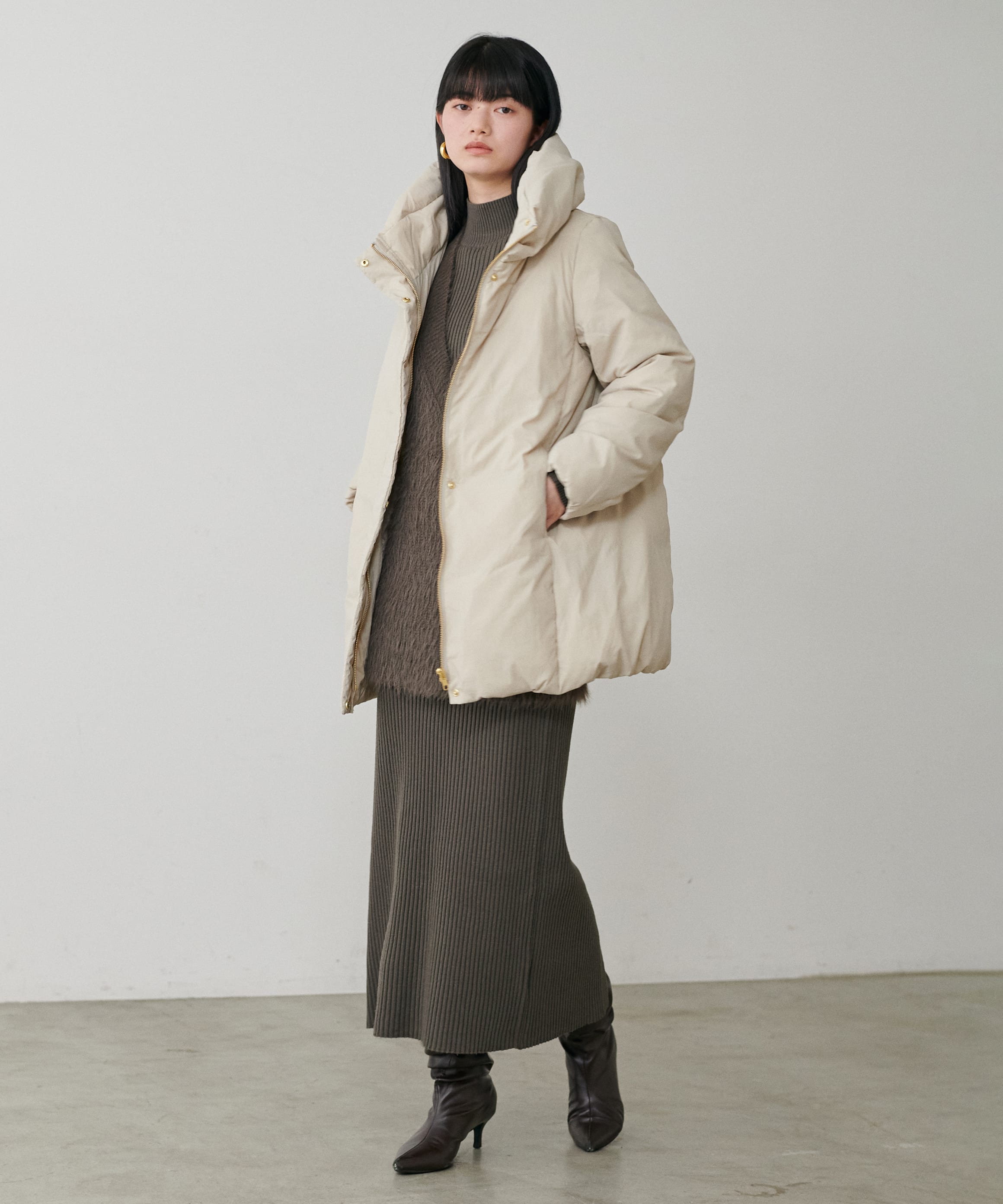 すっきりと着られるダウンコートや、表情のある編地が魅力のニット、肌あたり柔らかなベロアパンツなど、