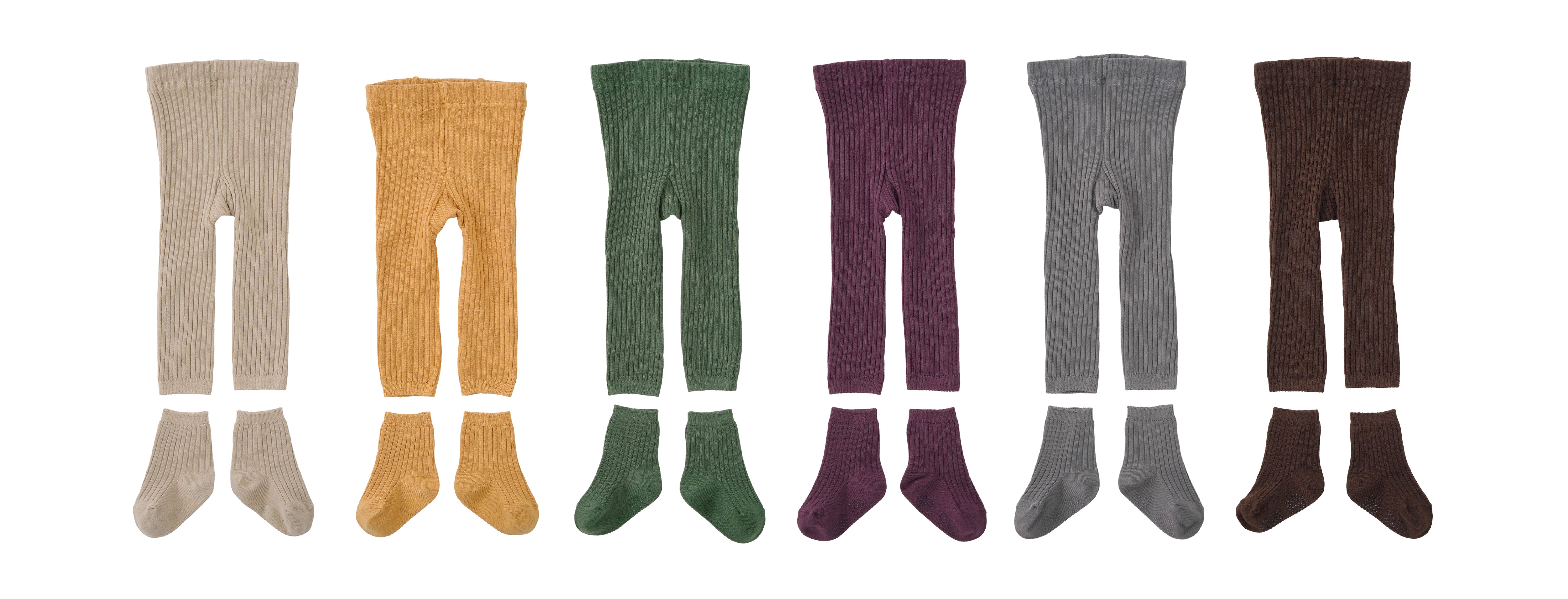 こっくりとした色合いのアイテムとカラフルなタイツやレギンスとの組み合わせをお楽しみください。