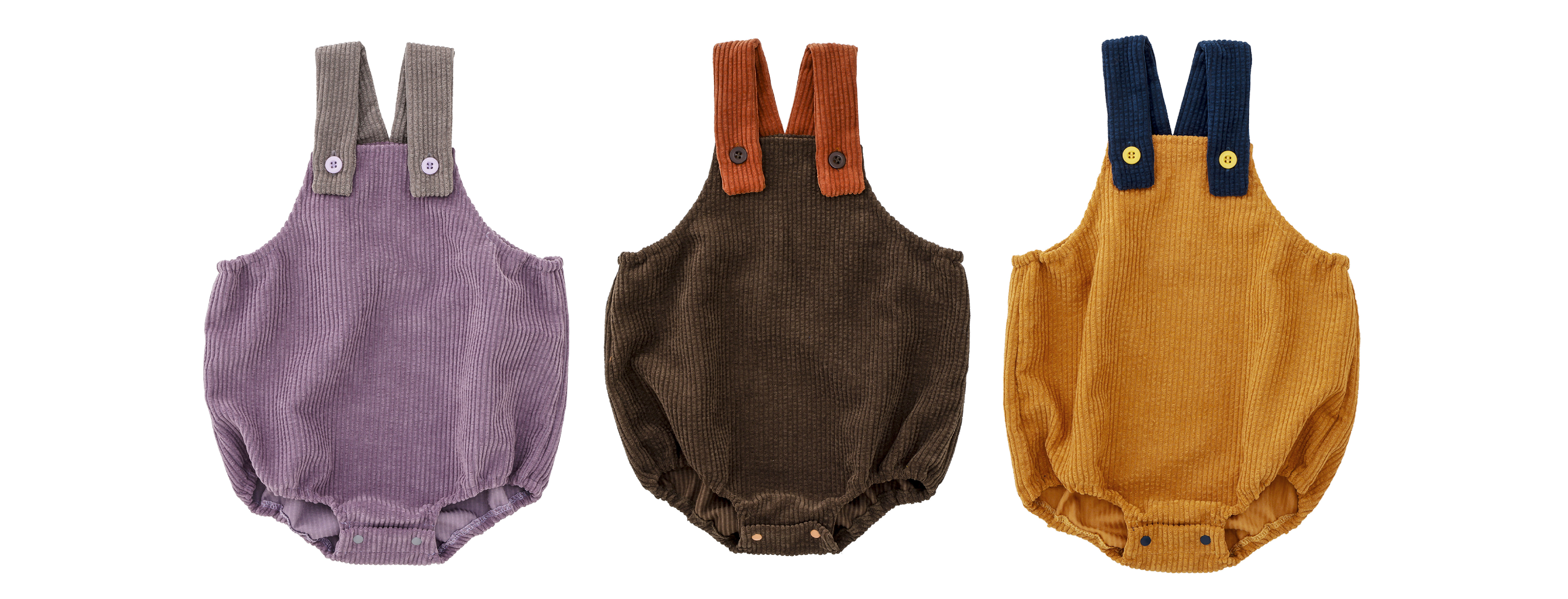 今回の企画では、秋冬をあたたかくおしゃれに乗り切れるコーデュロイ素材を使用したセットアップやロンパースなどが登場。
