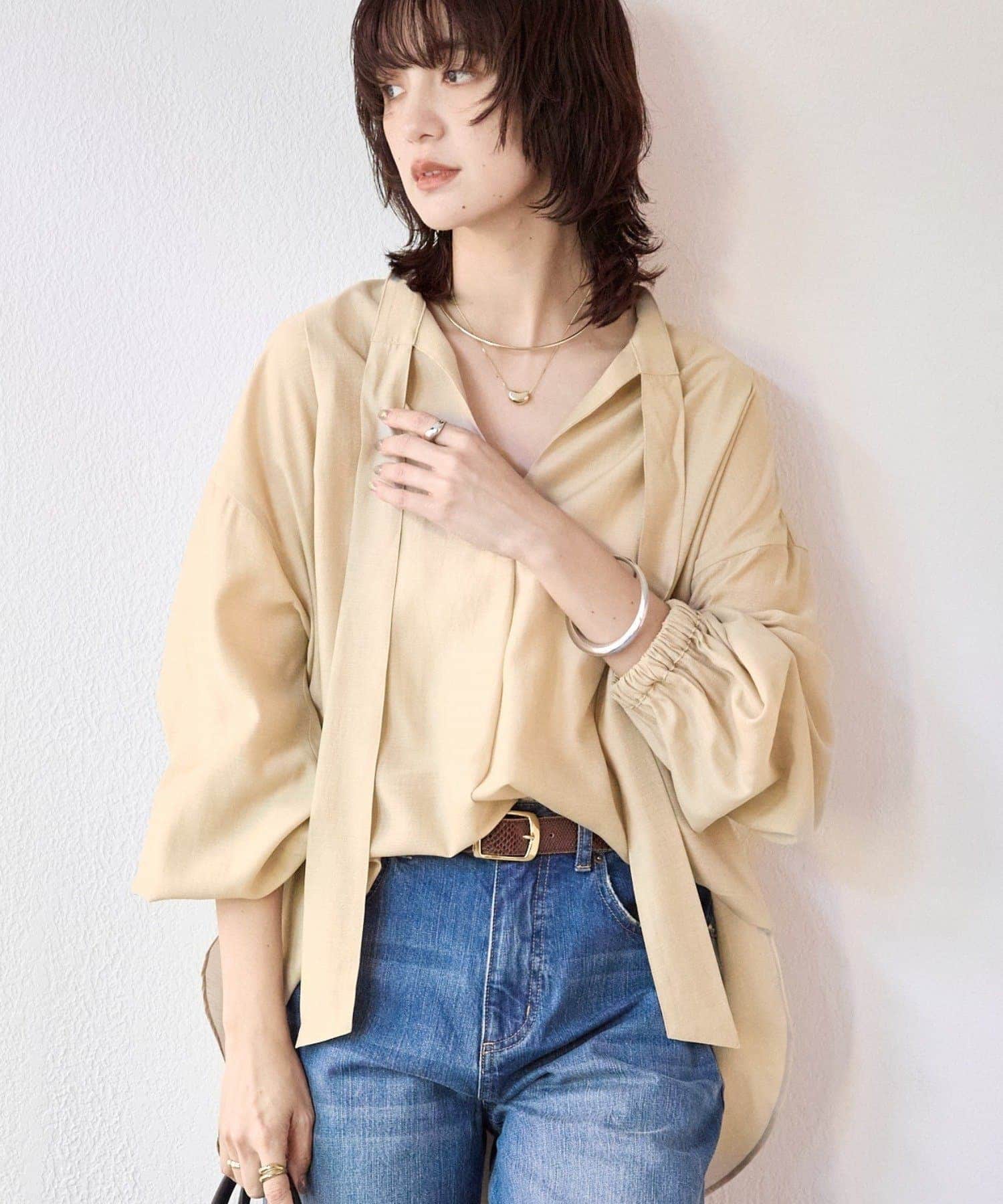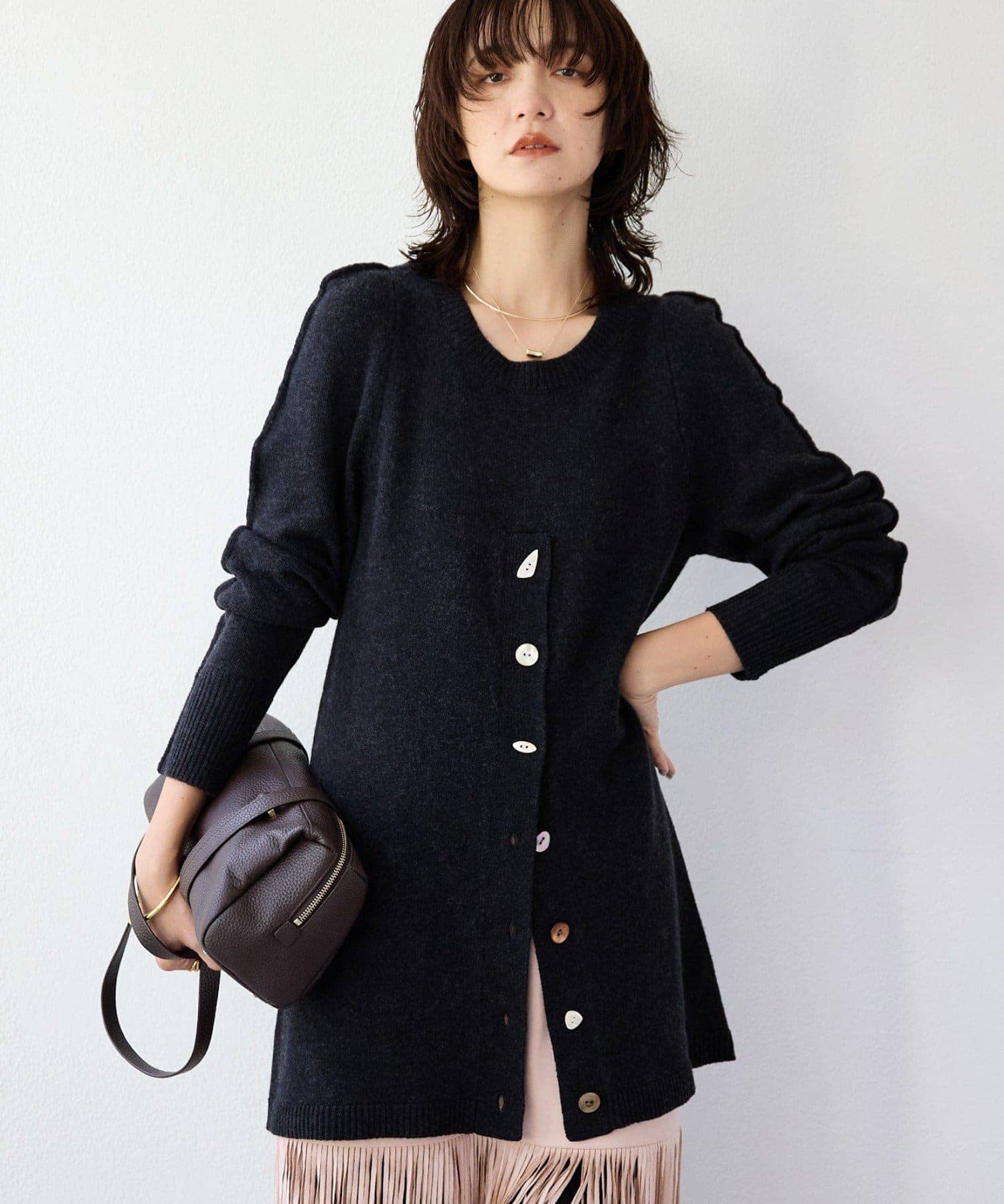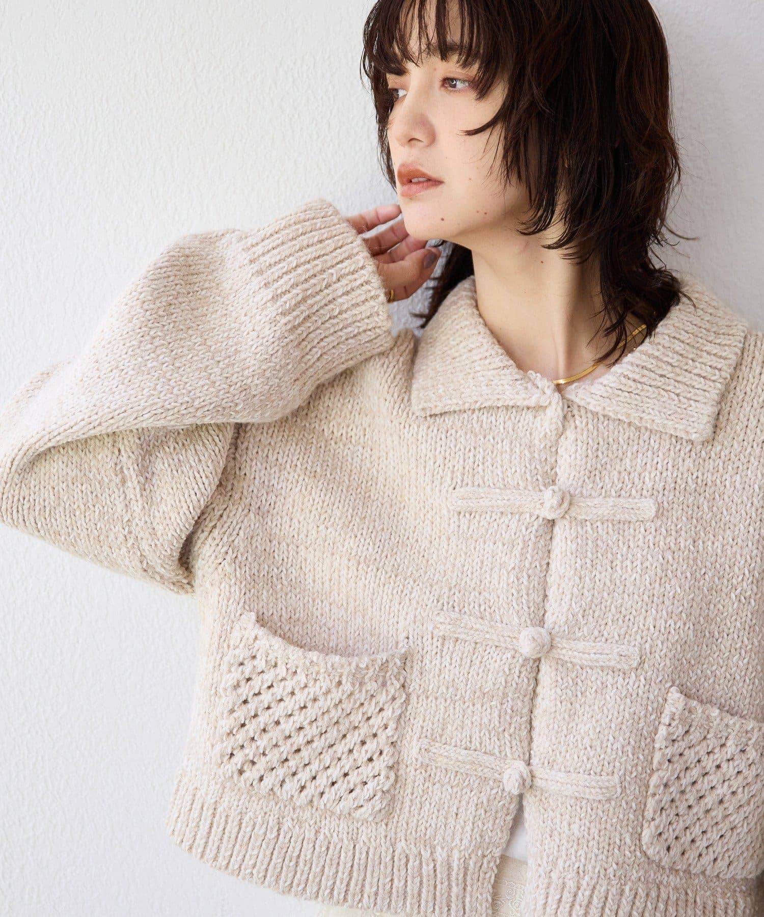 セーラーカラー風の衿が印象的なスキッパーネックのニットや