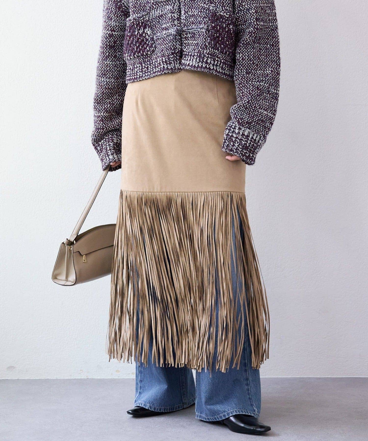 華やかなフリンジが着映えするラップ型のデニムスカートも予約startです♪