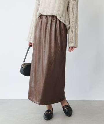 ピーチ素材でさりげなく高級感を演出し、カジュアルなトップスと合わせても、ラフになりすぎずまとめてくれます。