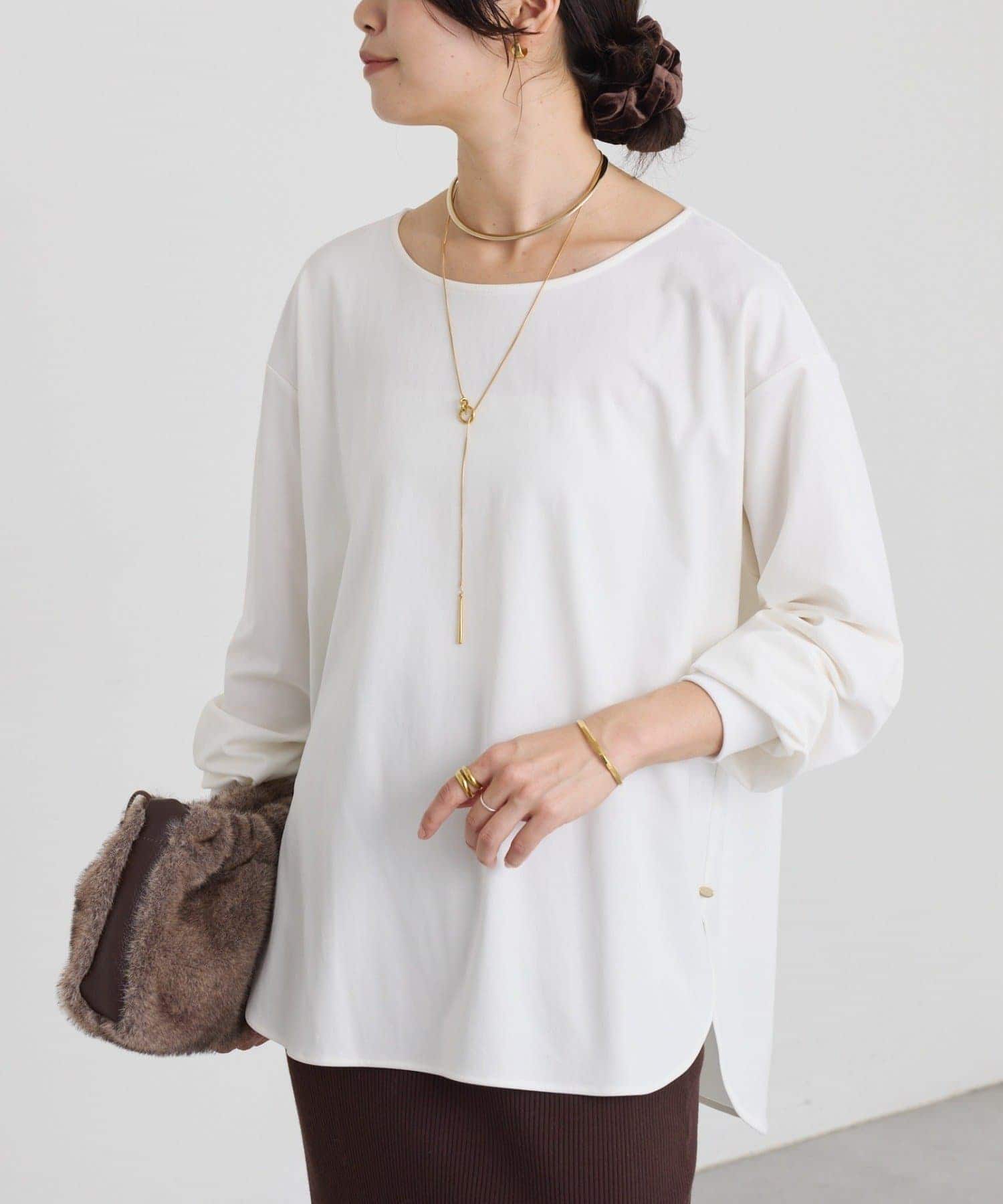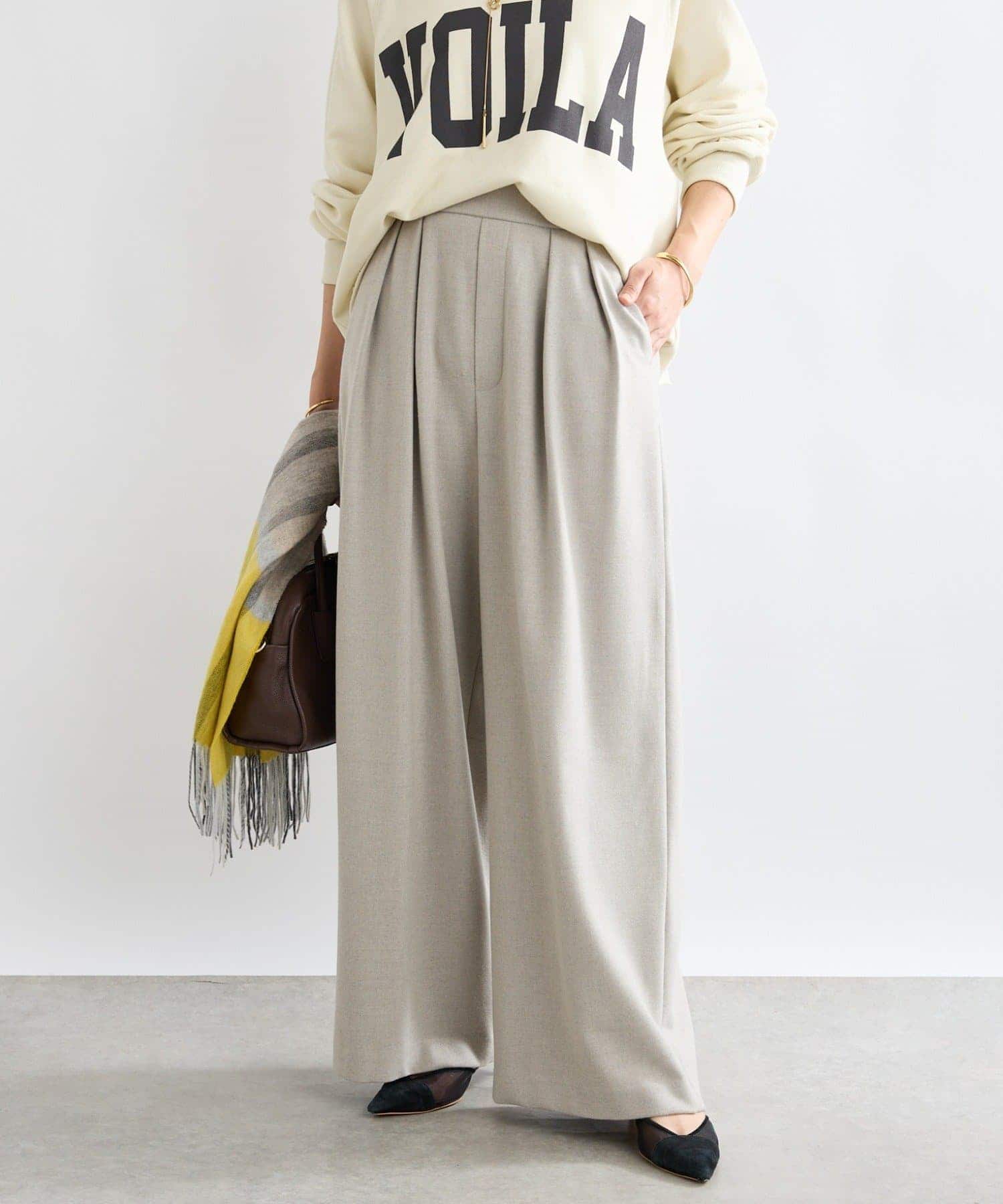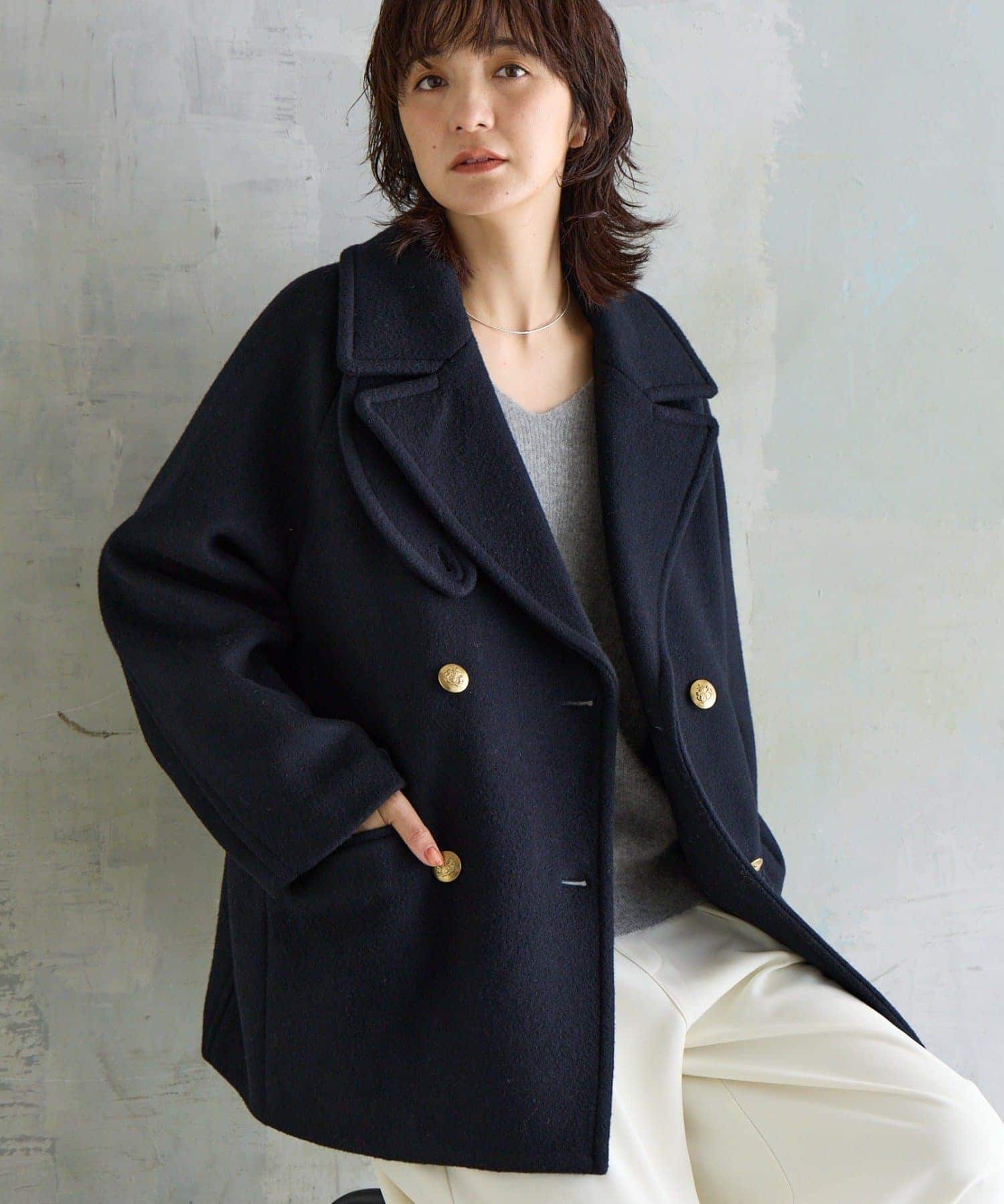 ゆったりとした身幅で中に厚手のニットなども着こみやすく、