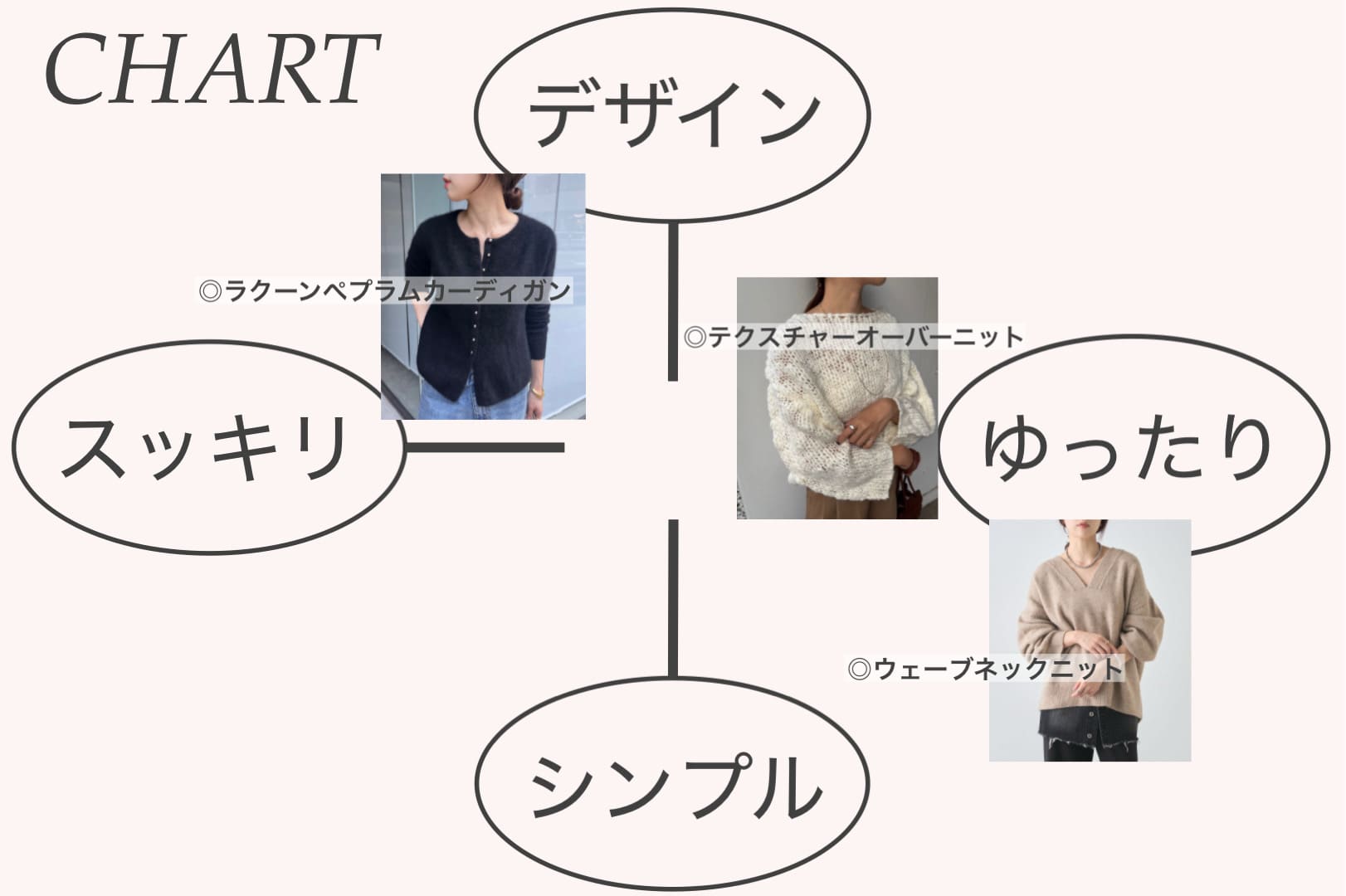 3つのアイテムを「すっきり」⇔「ゆったり」と