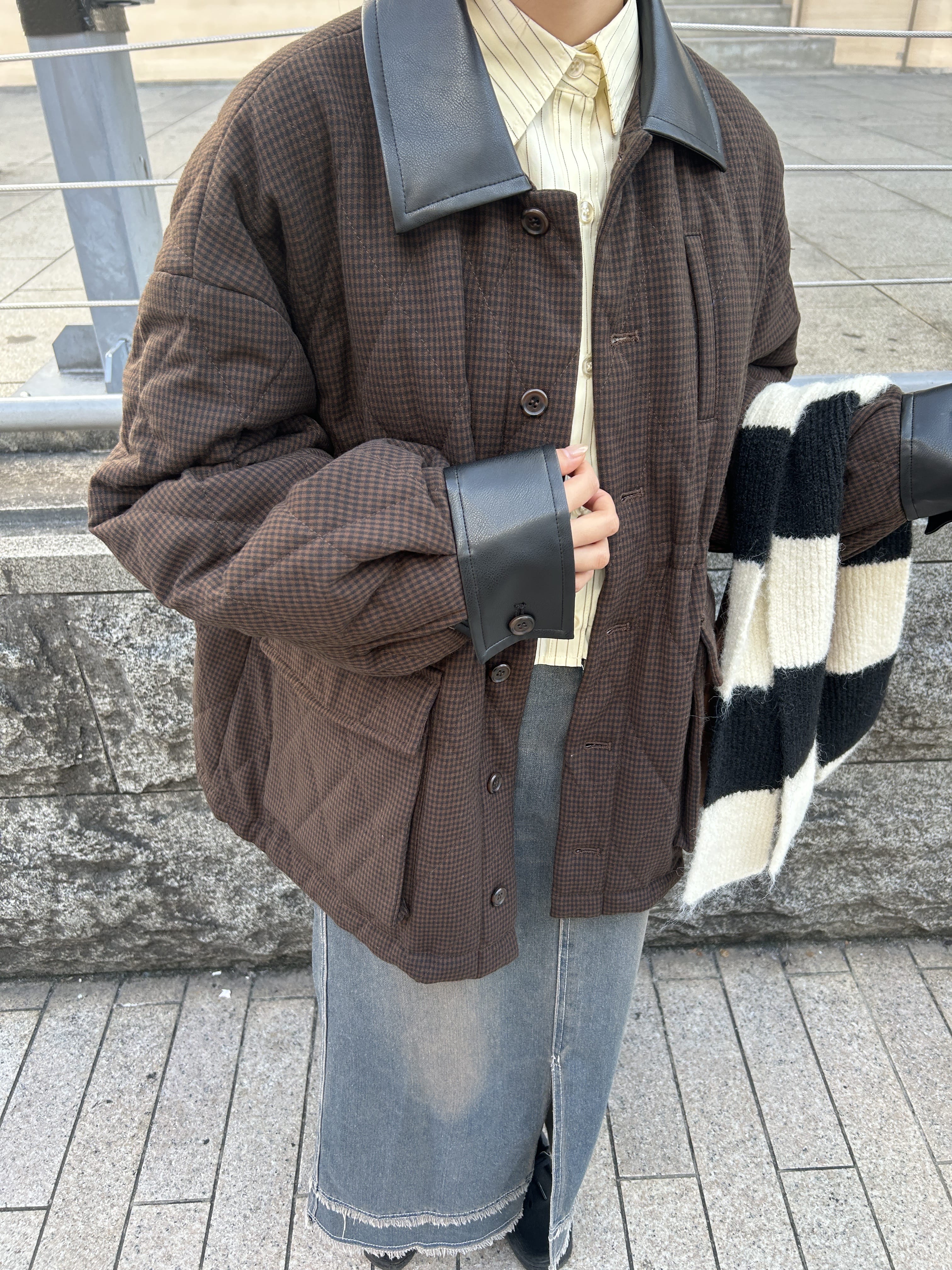 B チェックキルティングジャケット
