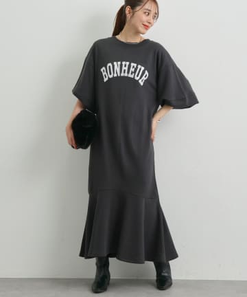 柔らかな肌触りとあたたかな素材感の、メルトンニットで仕立てられたワンピース。