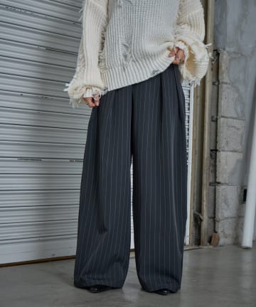 ピンストライプのワイドパンツを合わせればこなれた大人カジュアルに。