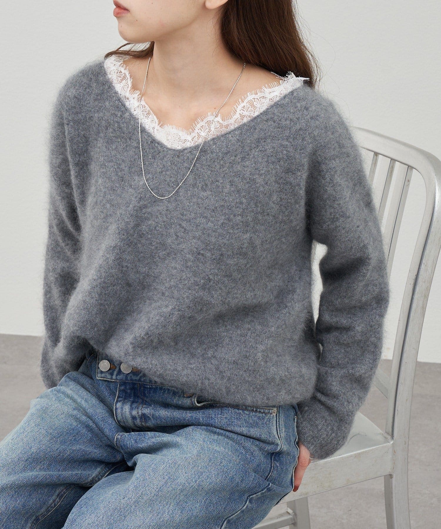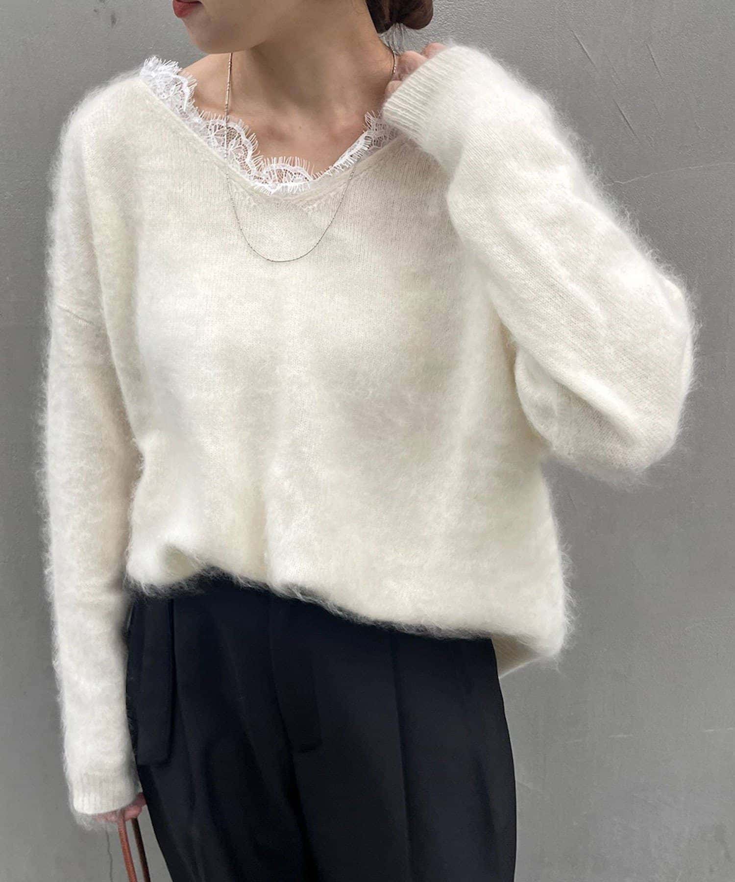 首周りにレースを施すことによって、シンプルすぎず華やかな印象に。