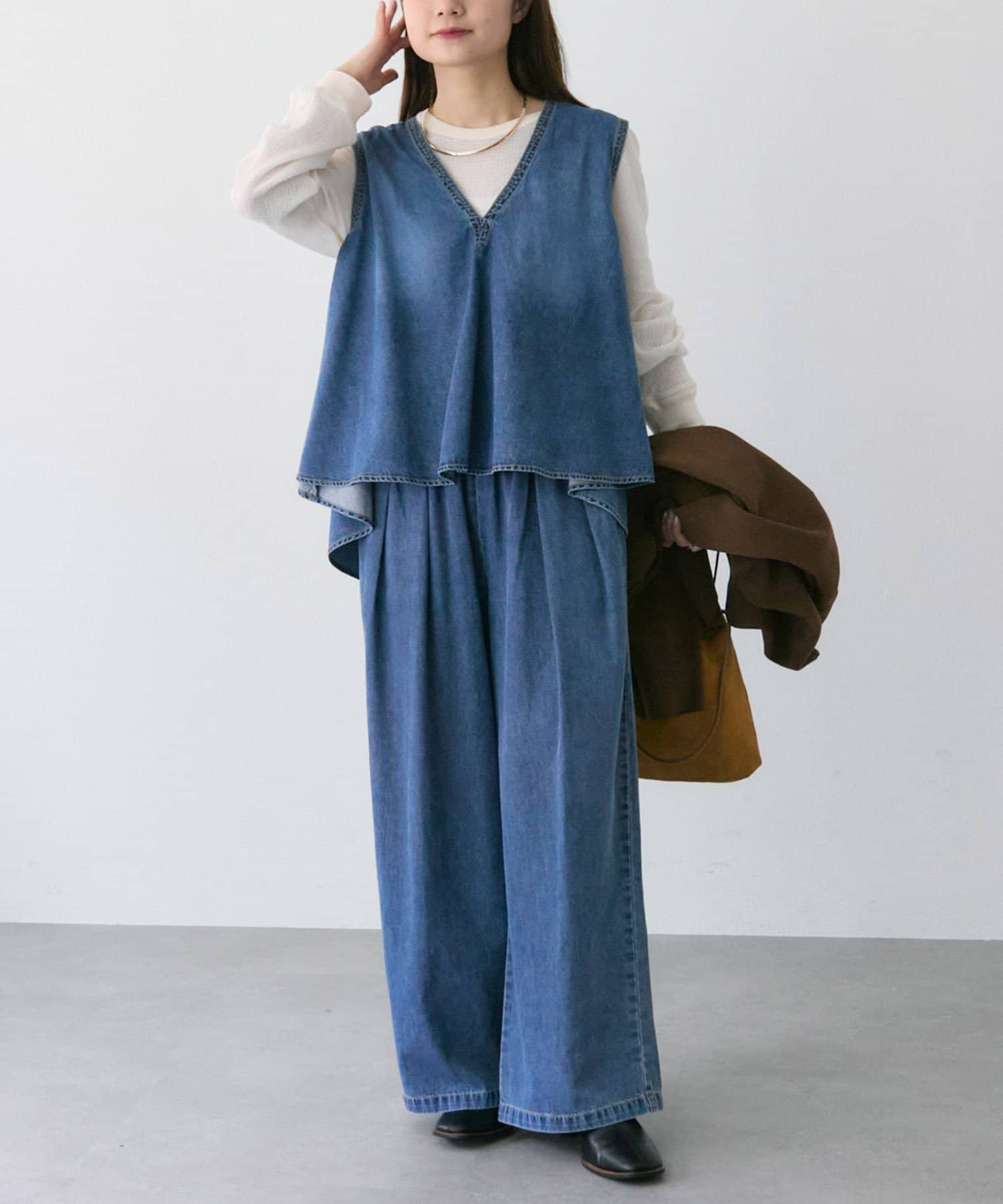 【SET ITEM】デニムフレアブラウス+イージーパンツセット¥16,500(tax in)30%OFF → ¥11,550(tax in)