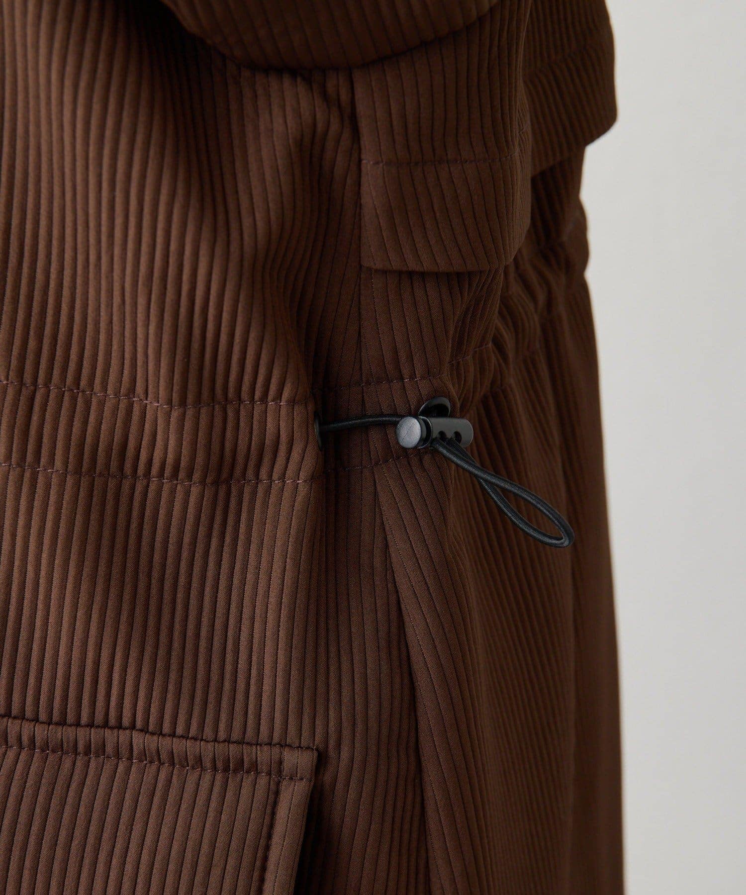 - 素材:《表地・裏地》ポリエステル100%《中綿》ダウン83%・フェザー17%《ボア部分》ポリエステル100%