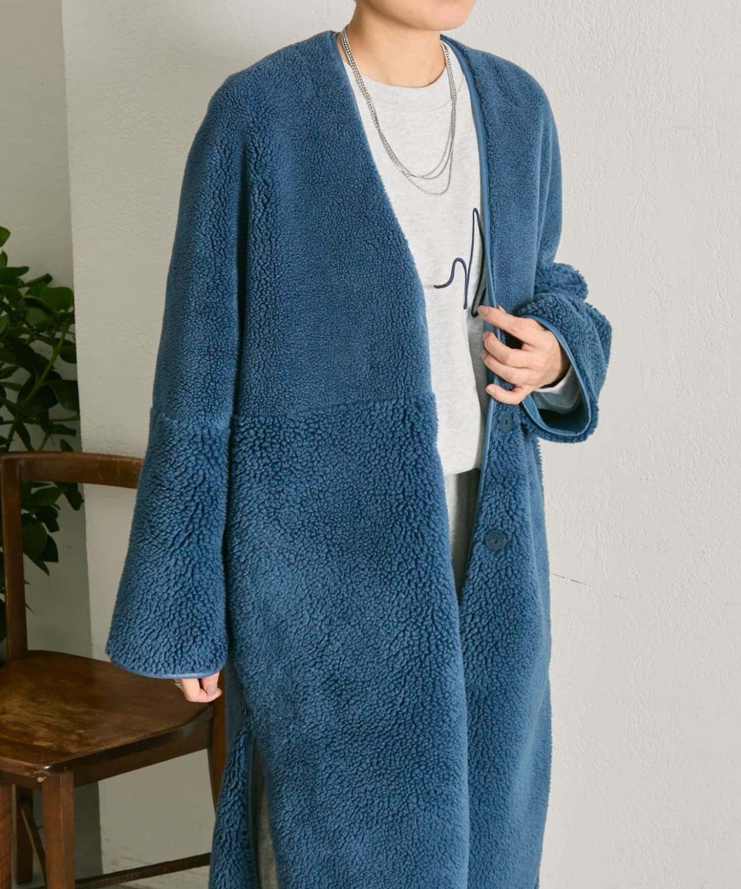 《ノーカラー》ボアロングコート【SUM1 STYLE(スミスタイル)】