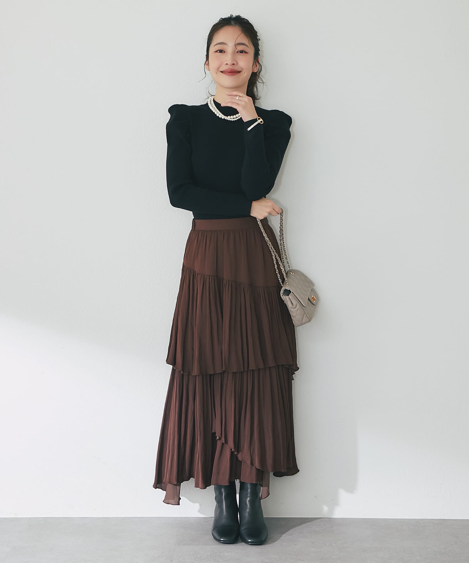 ・上品な光沢感のある生地を使用したティアードスカートです。