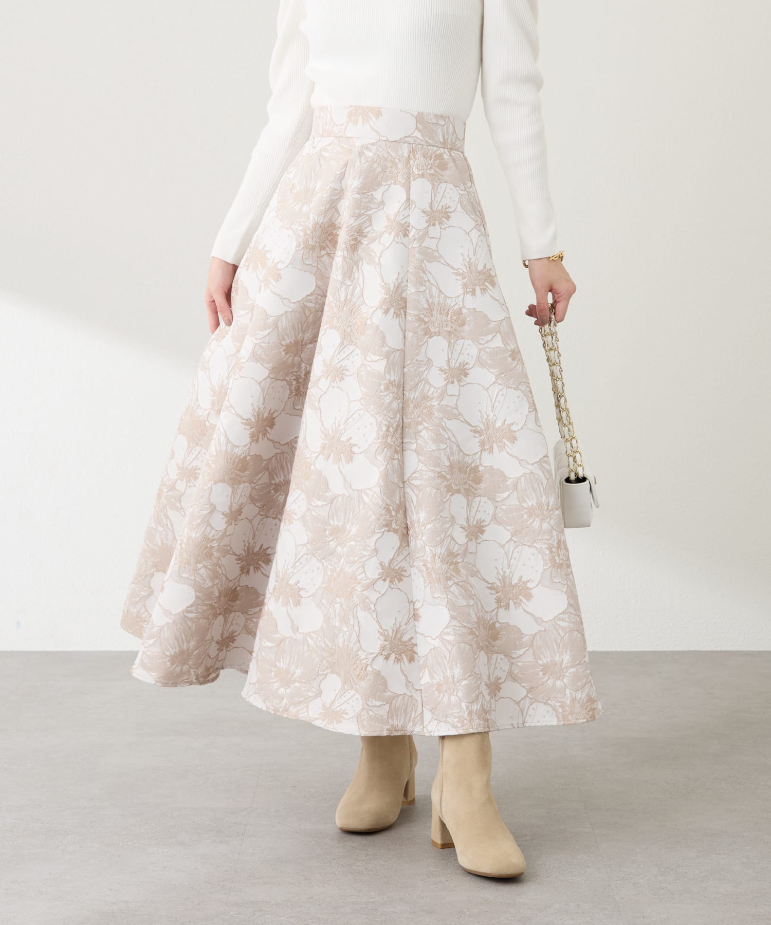 ・上品なフラワージャガードで存在感抜群のフレアスカートです。