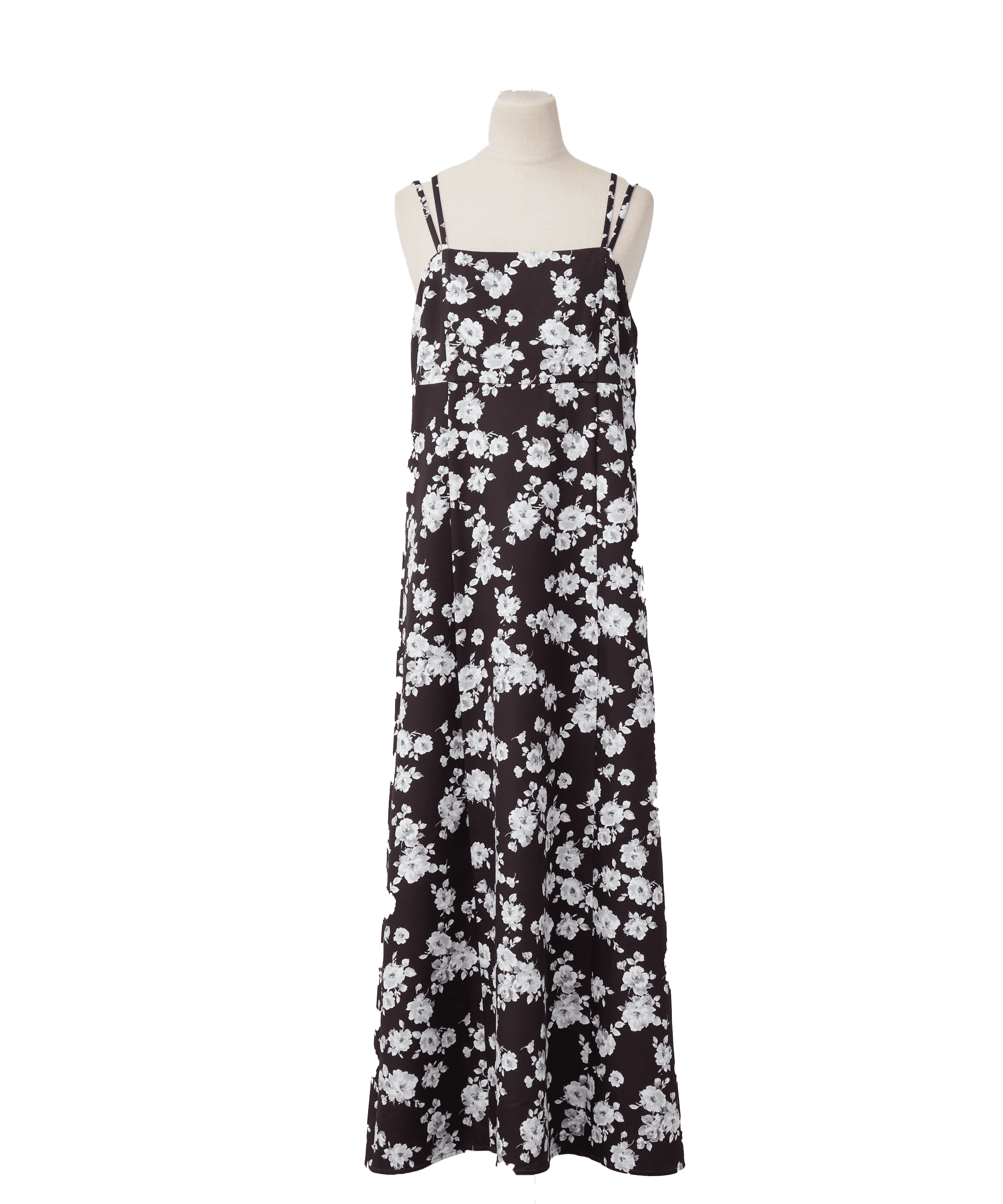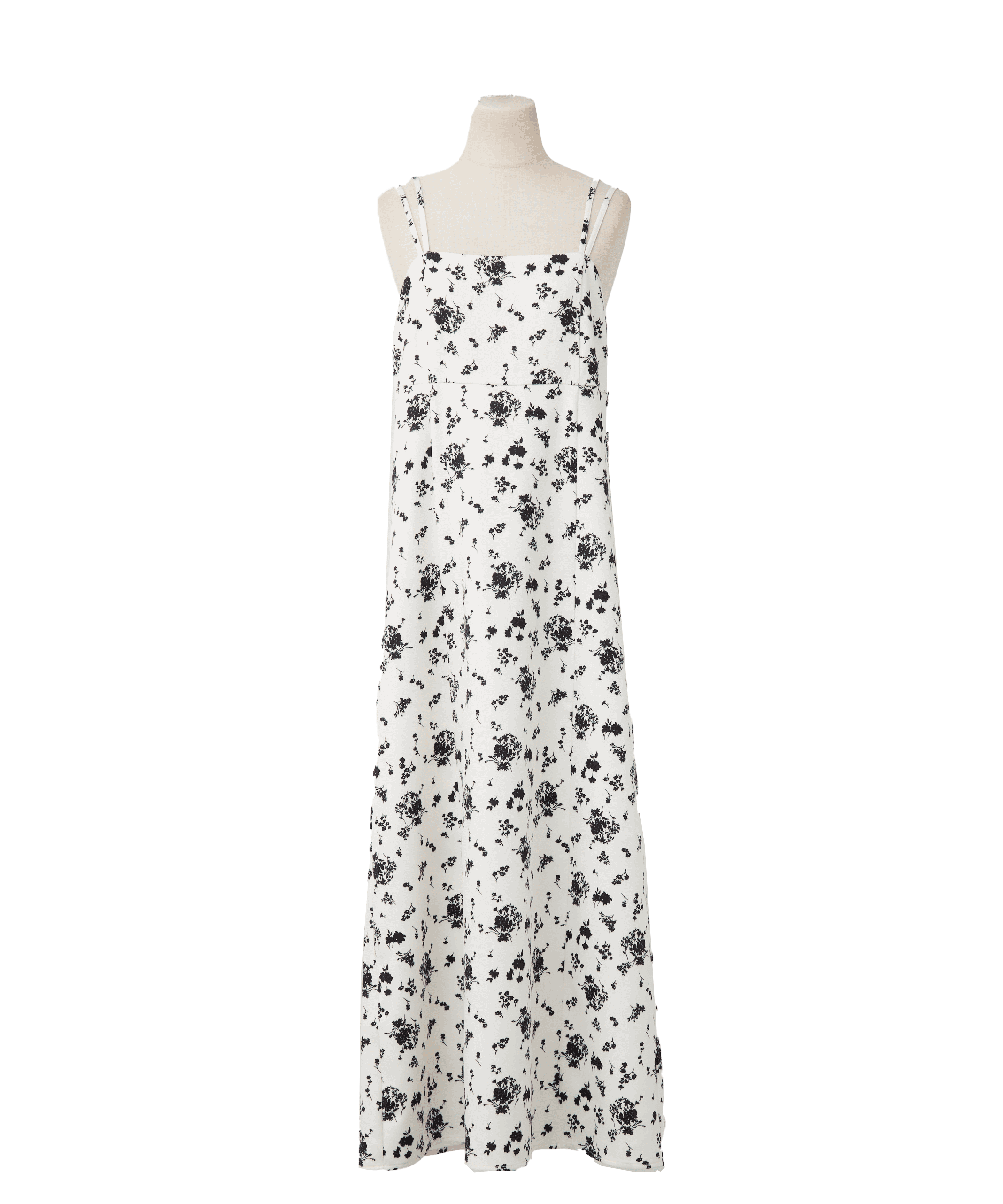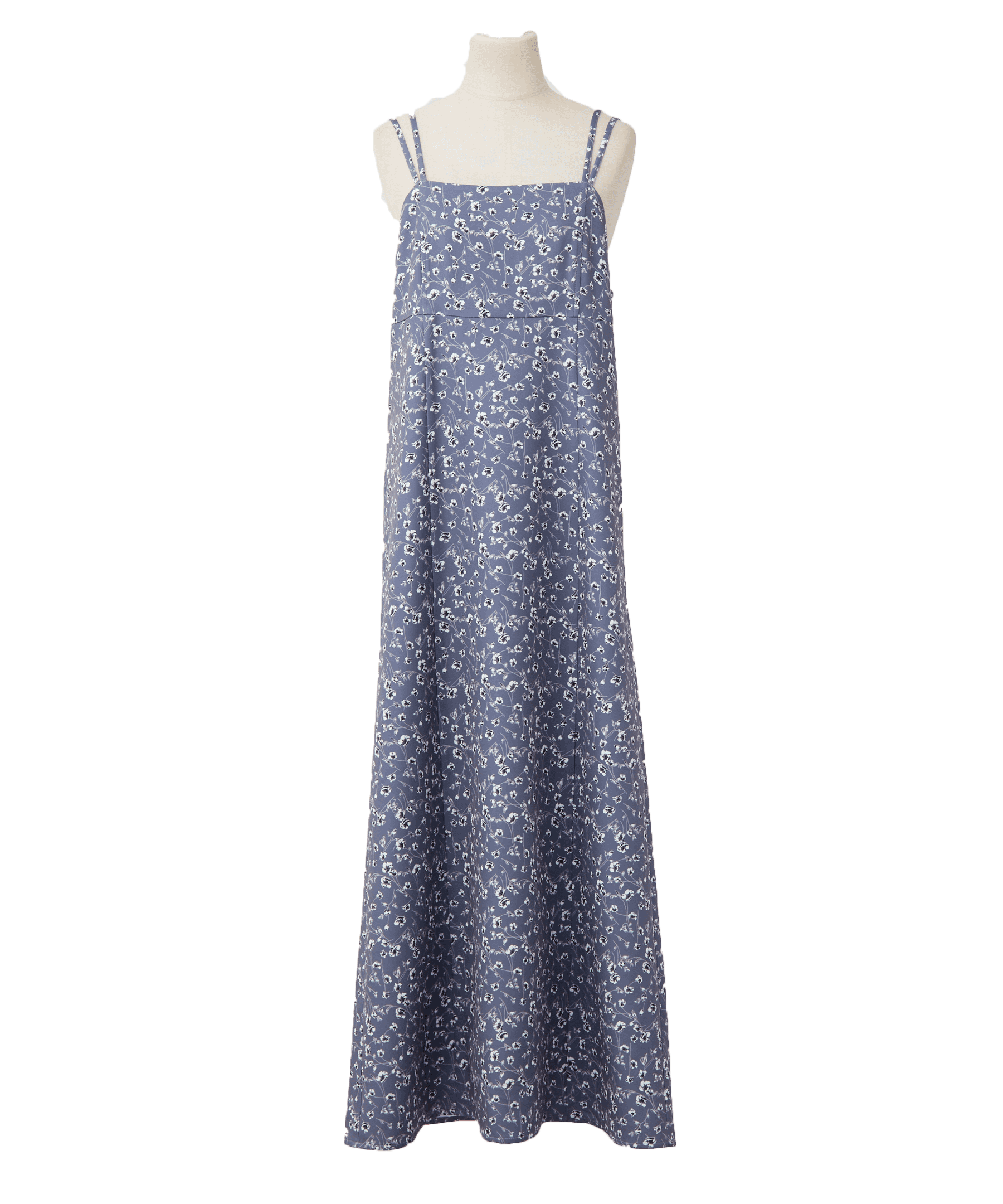 ナチュオリジナルの花柄のキャミワンピ。バックスタイルの華奢なストラップが、女性らしさを際立たせるポイント。ストラップは長さの調節が可能なので、アジャスターに合わせてお好みのフィット感でリボンを結んで着用いただけます。